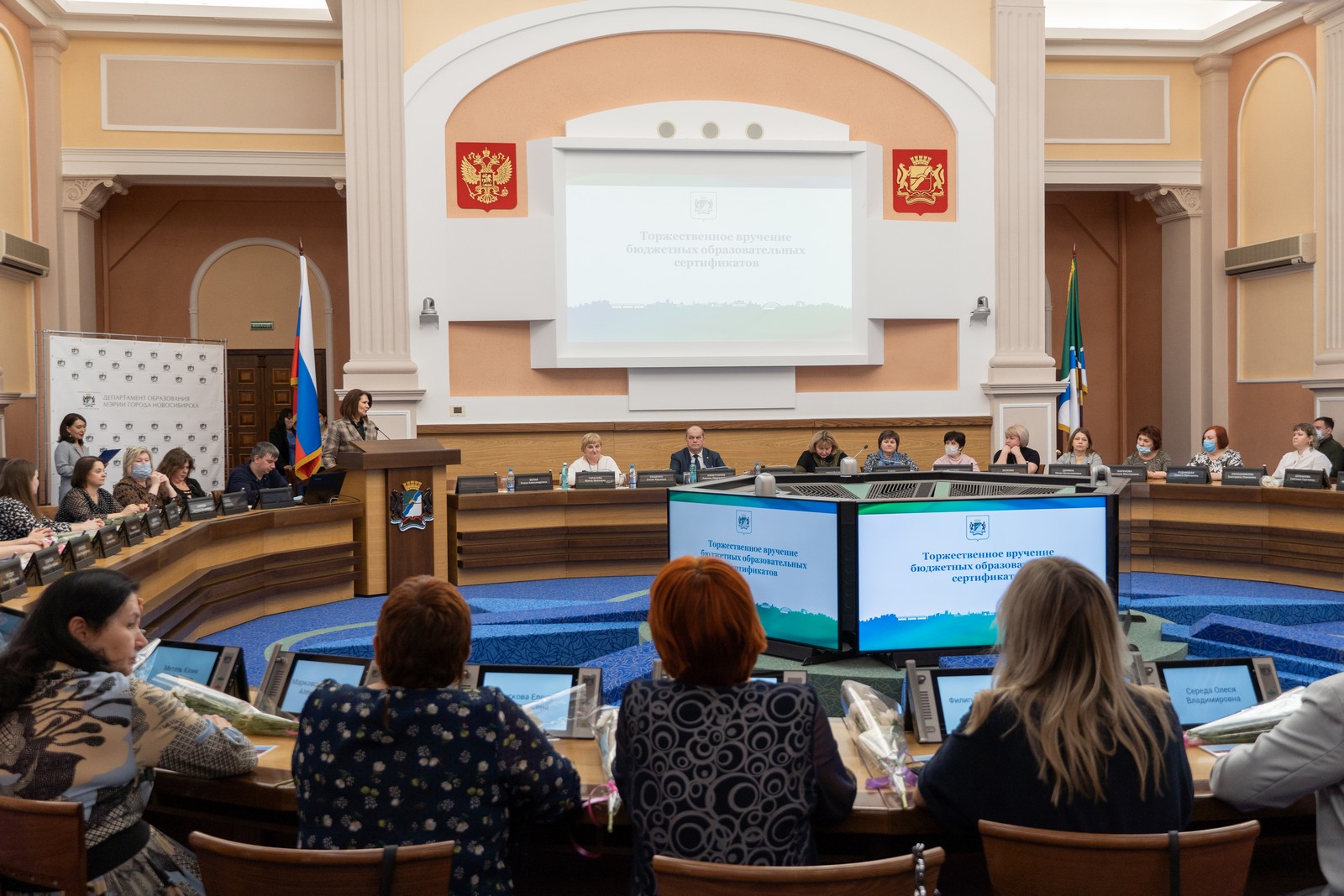 28 февраля в большом зале мэрии города Новосибирска прошло чествование 40 победителей городского конкурса на получение бюджетного образовательного сертификата в 2022 году.
