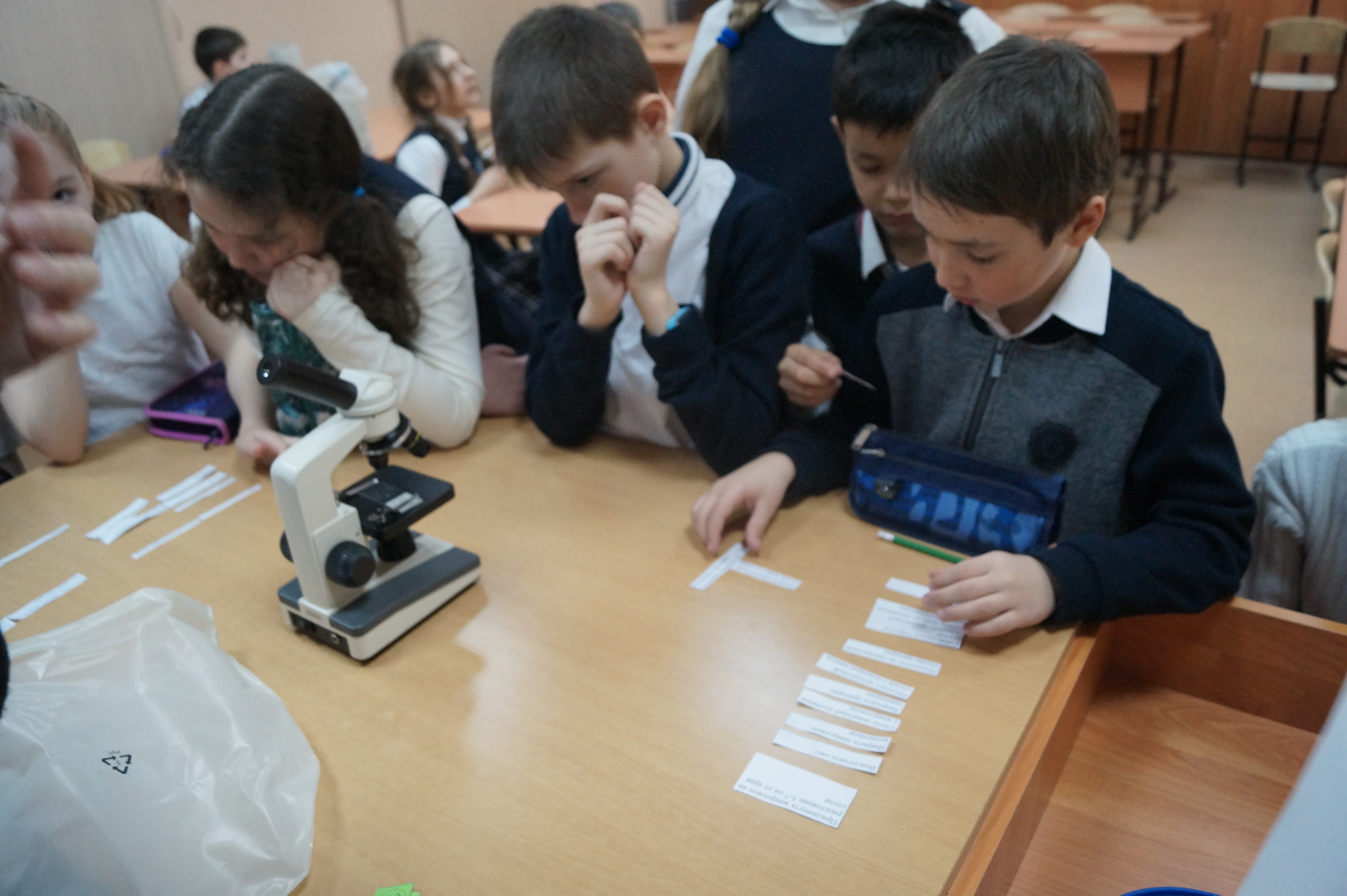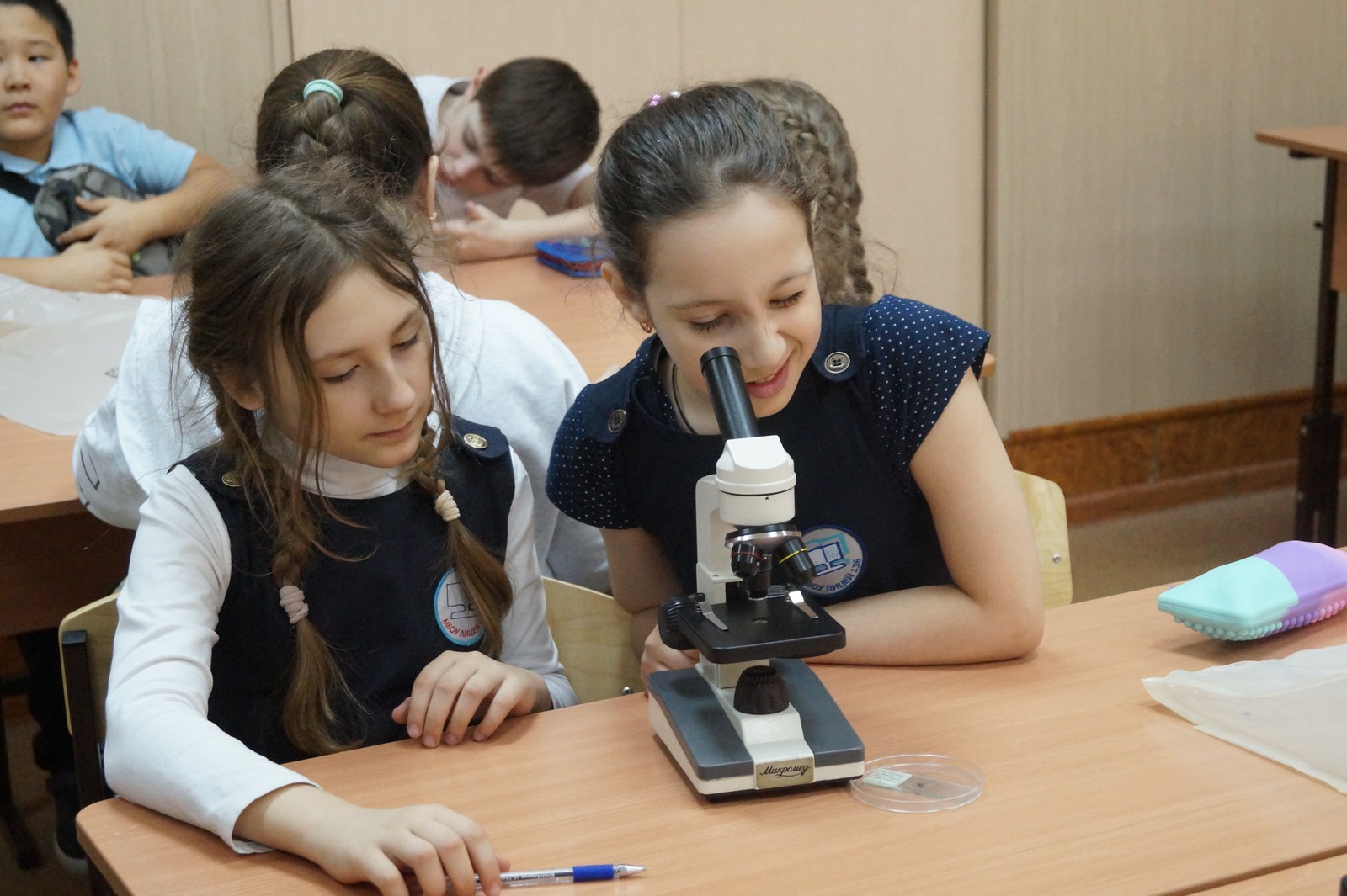 В лаборатории «Волшебное стеклышко» ребятам рассказали, для чего нужны микроскопы, как они устроены и как работают. Все ребята смогли самостоятельно рассмотреть в окуляр микроскопа специально приготовленные микропрепараты.