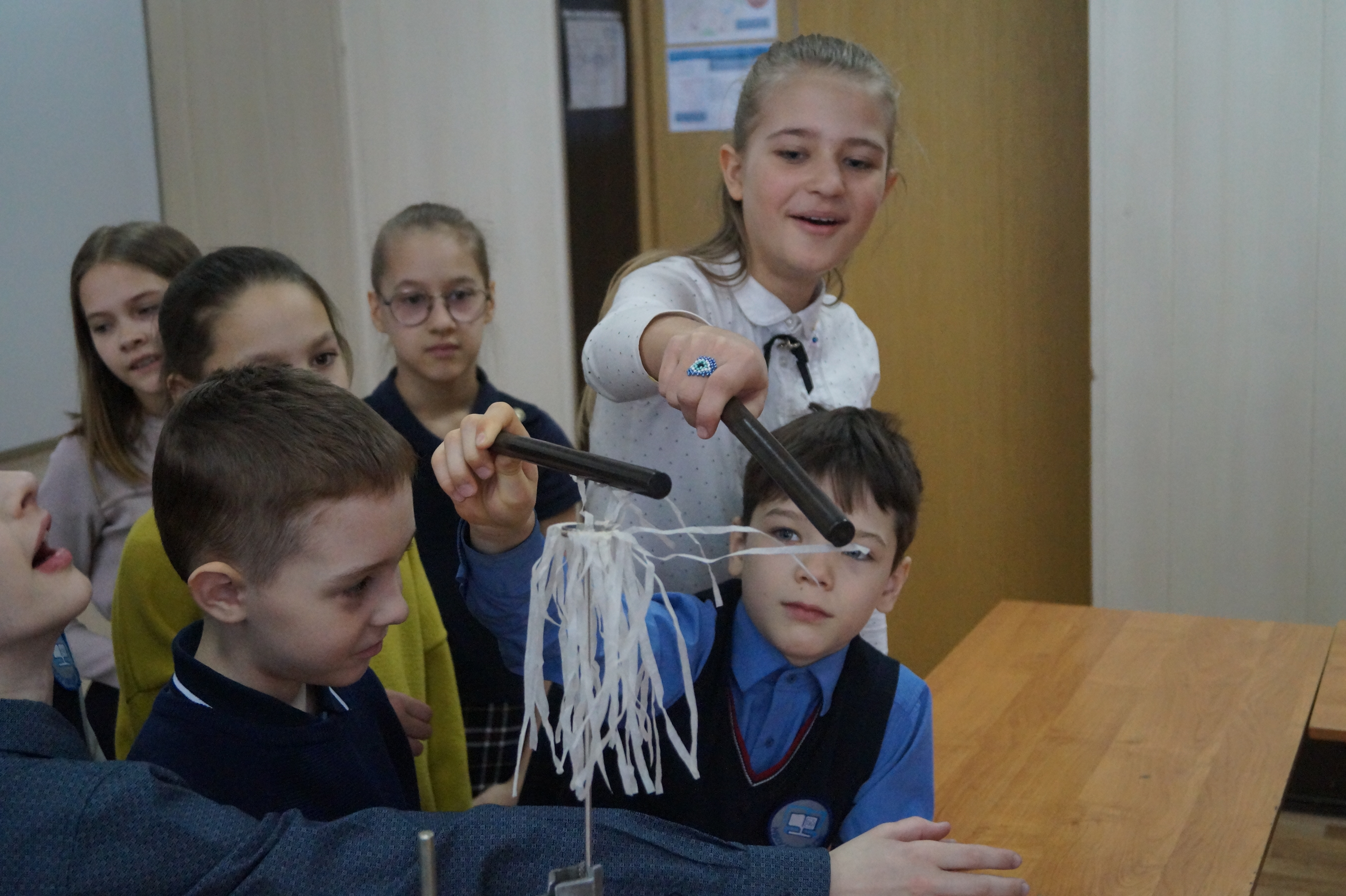 В лаборатории «Электростатики» воздушные шарики не только летали вверх и вниз, но притягивались и отталкивались друг от друга.