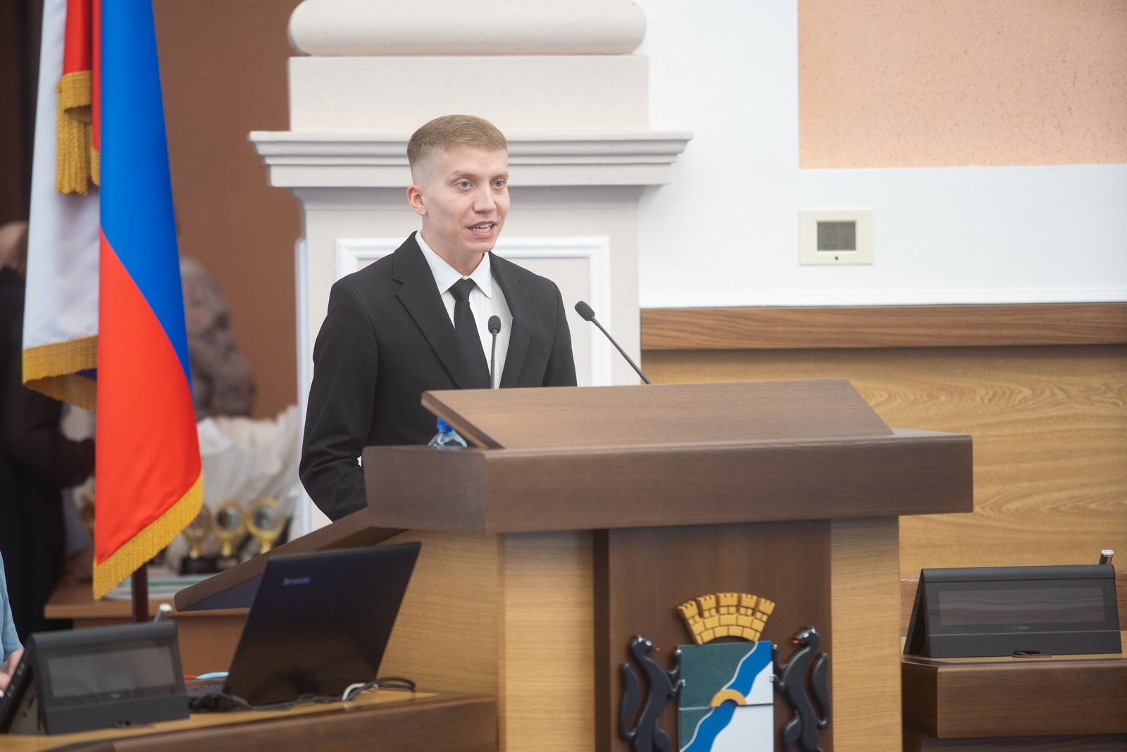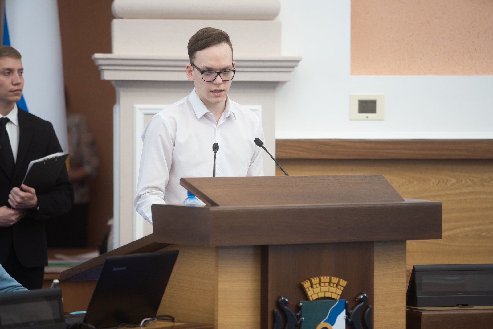 С ответным словом от имени всех участников XLI городской открытой научно-практической конференции Новосибирского научного общества учащихся «Сибирь» выступил ученик 11 класса Лицея №28, обладатель «Золотой лиги» в секциях «Инженерия и технология» и «Технологии цифровой экономики и защита информации» Виктор Лапшин.