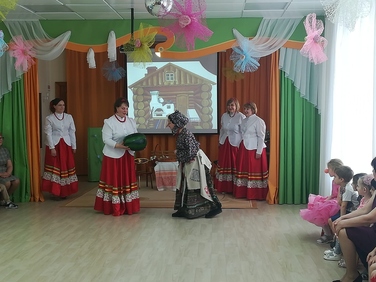 В заключении Хозяюшка подарила всем «первоапрельский арбуз», в котором вместо косточек дети нашли конфеты. Много смеха и сюрпризов было на празднике!