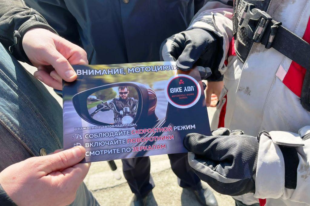 В ходе мероприятия, участники проводили беседы с автолюбителями о неукоснительном соблюдении Правил дорожного движения и взаимовежливости к другим участникам дорожного движения, в том числе мотоциклистам.
