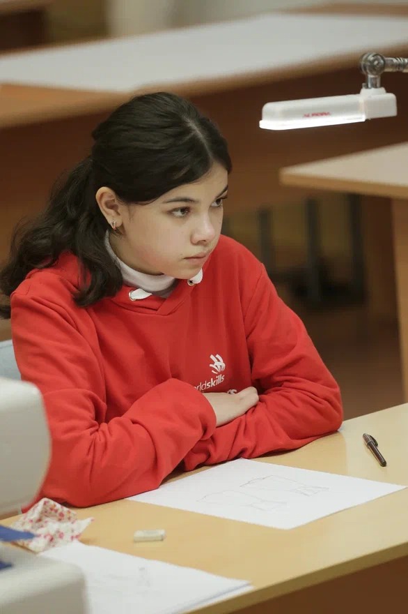 Также в Санкт-Петербурге прошли состязания в компетенции «Технологии моды» (14-16). Медальоном за профессионализм эксперты отметили выступление Мубины Алимовой, МБОУ СОШ № 175. Мубина прекрасно справилась с конкурсным заданием: изготовлением женского платья и аксессуара к нему, начиная с этапа создания технического рисунка до демонстрации готового изделия.