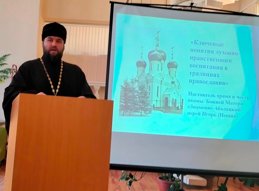 Открывал мероприятие настоятель храма в честь иконы Божией Матери «Знамение-Абалацкая» иерей Игорь (Непша), обозначив в своем выступлении очень важную и актуальную как никогда в наше время проблему духовно-нравственного воспитания современных школьников.