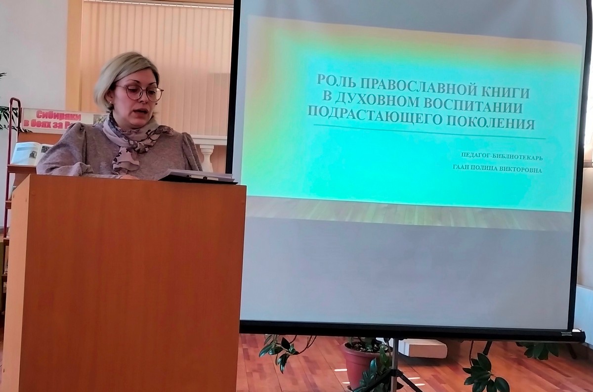Педагог-библиотекарь православной гимназии во имя святых равноапостольных Кирилла и Мефодия Гаан П. В. показала роль православной книги в духовном воспитании подрастающего поколения, подчеркнув, что без знания духовной литературы невозможно правильно понять и трактовать нашу русскую классическую литературу.