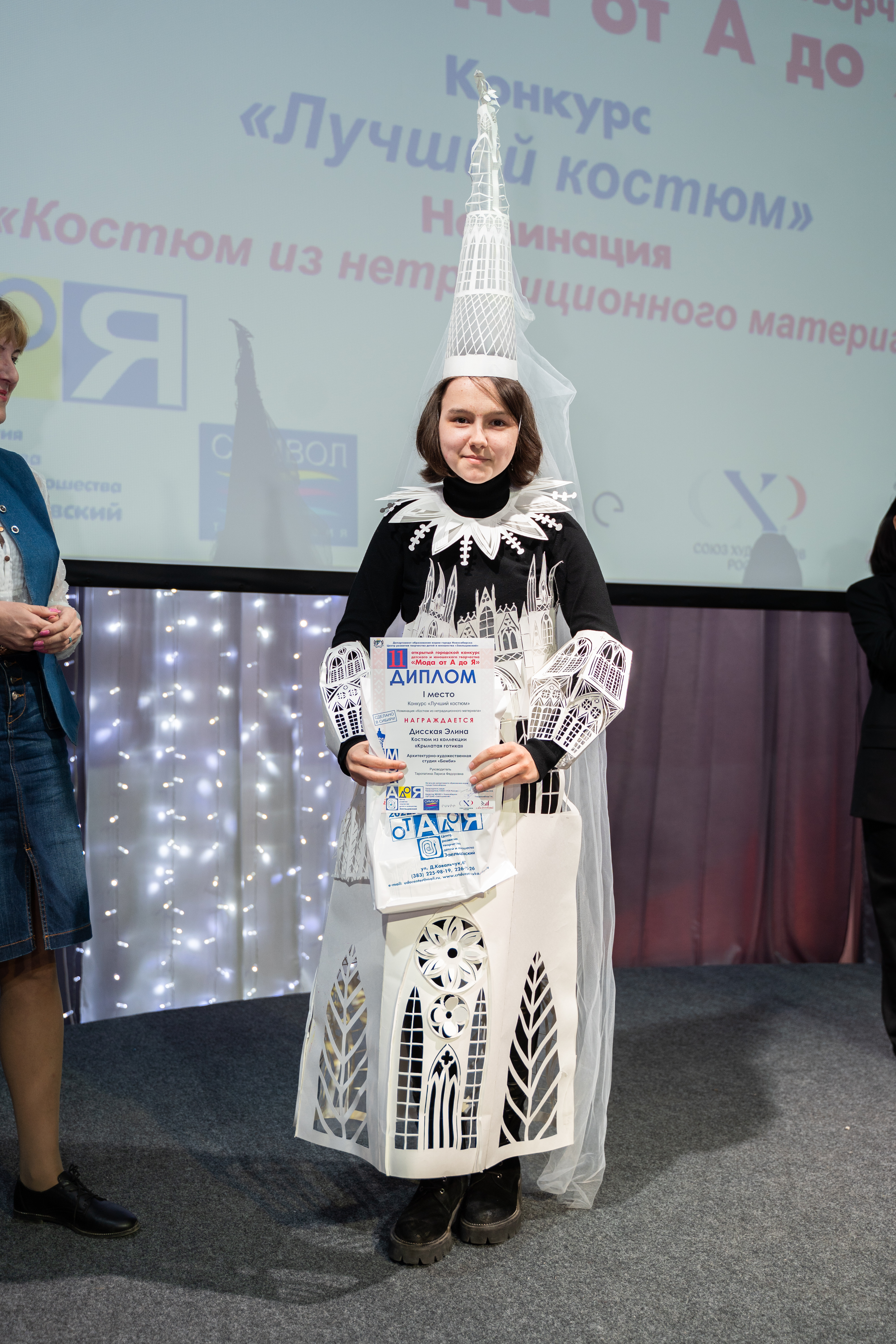 Обладателем Гран-при 11 открытого городского конкурса детского и юношеского творчества «Мода от А до Я» стала обучающаяся Арт-студии «Крылья» Ксения Куканова. Более 150 участников стали обладателями дипломов победителя.