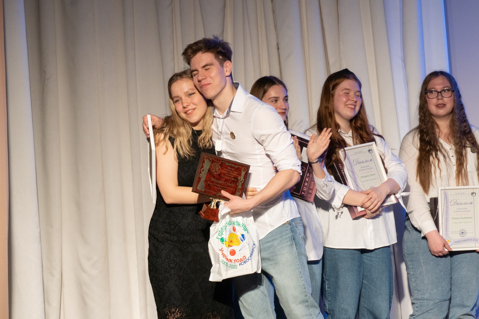 Дипломами департамента образования мэрии города Новосибирска награждены финалисты конкурса, Благодарственными письмами департамента образования мэрии города Новосибирска – педагогические коллективы образовательных организаций, подготовивших финалистов конкурса «Ученик года Новосибирска», и родители финалистов, памятные символы «За весомый вклад в развитие инновационного проекта «Ученик года Новосибирска» 2002 – 2022» вручены руководителям образовательных организаций – активных участников конкурса.