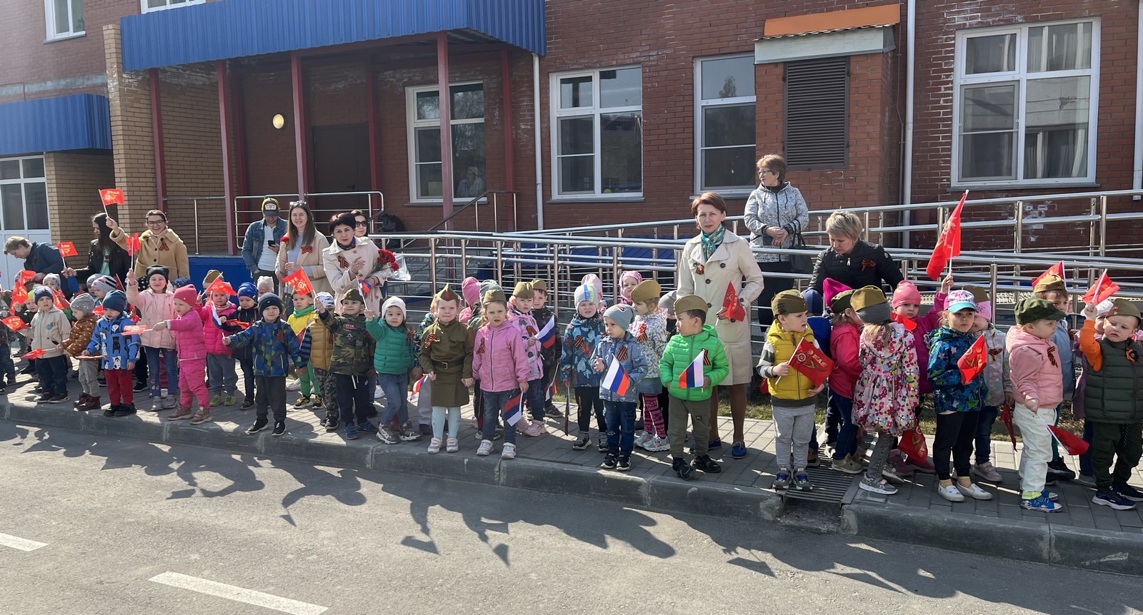 По площади детского сада строевым шагом под музыку военных лет прошли дети, представляющие различные виды войск: пограничники, десантники, танкисты, летчики, разведчики, моряки, спецназовцы, саниструкторы, кадеты. И завершился праздничный парад в честь Дня Победы прохождением колонны сотрудников детского образовательного учреждения.