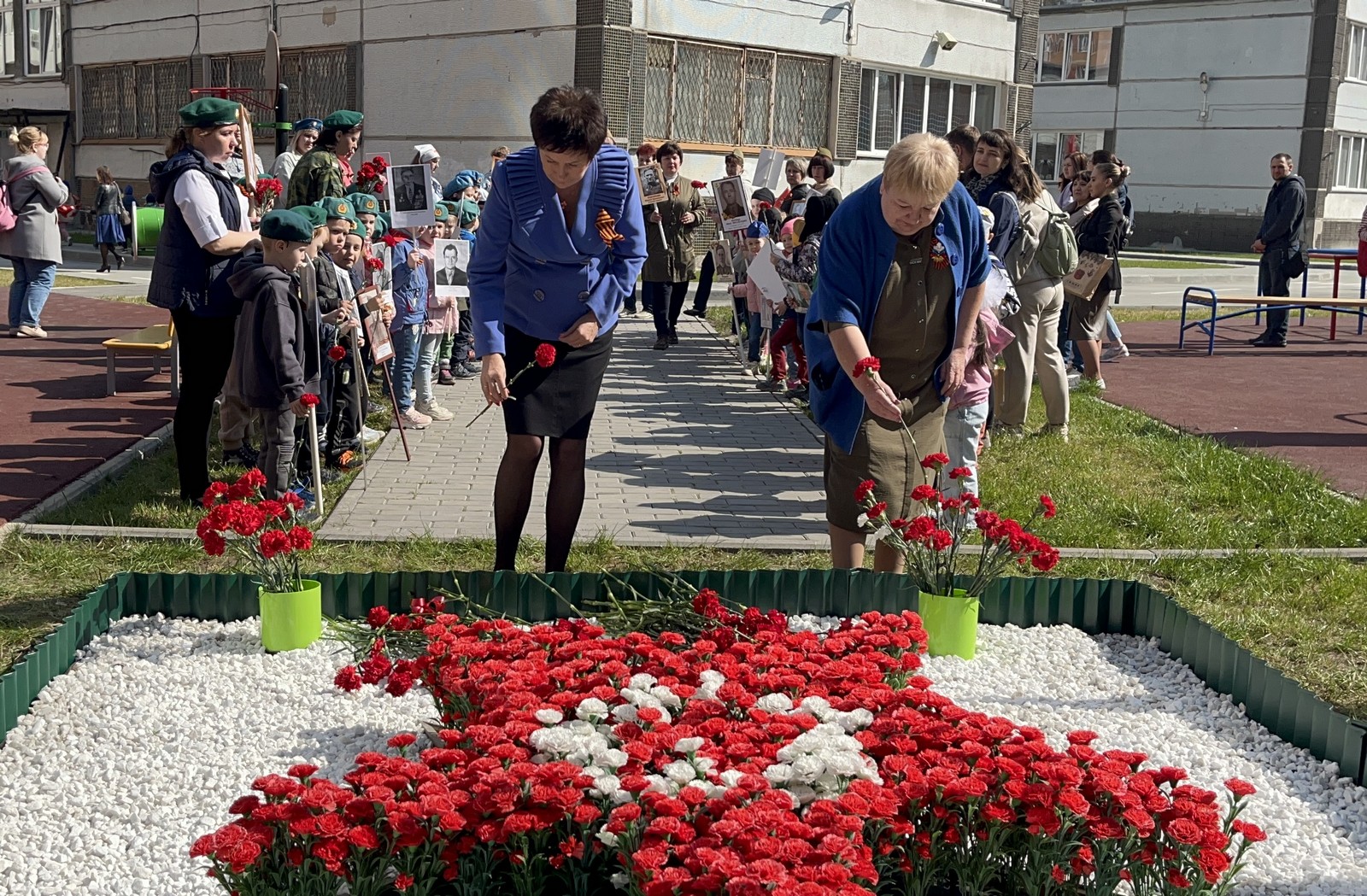 Под звуки метронома была объявлена минута молчания. Потомки героев Великой Отечественной войны возложили цветы на Аллею Памяти.