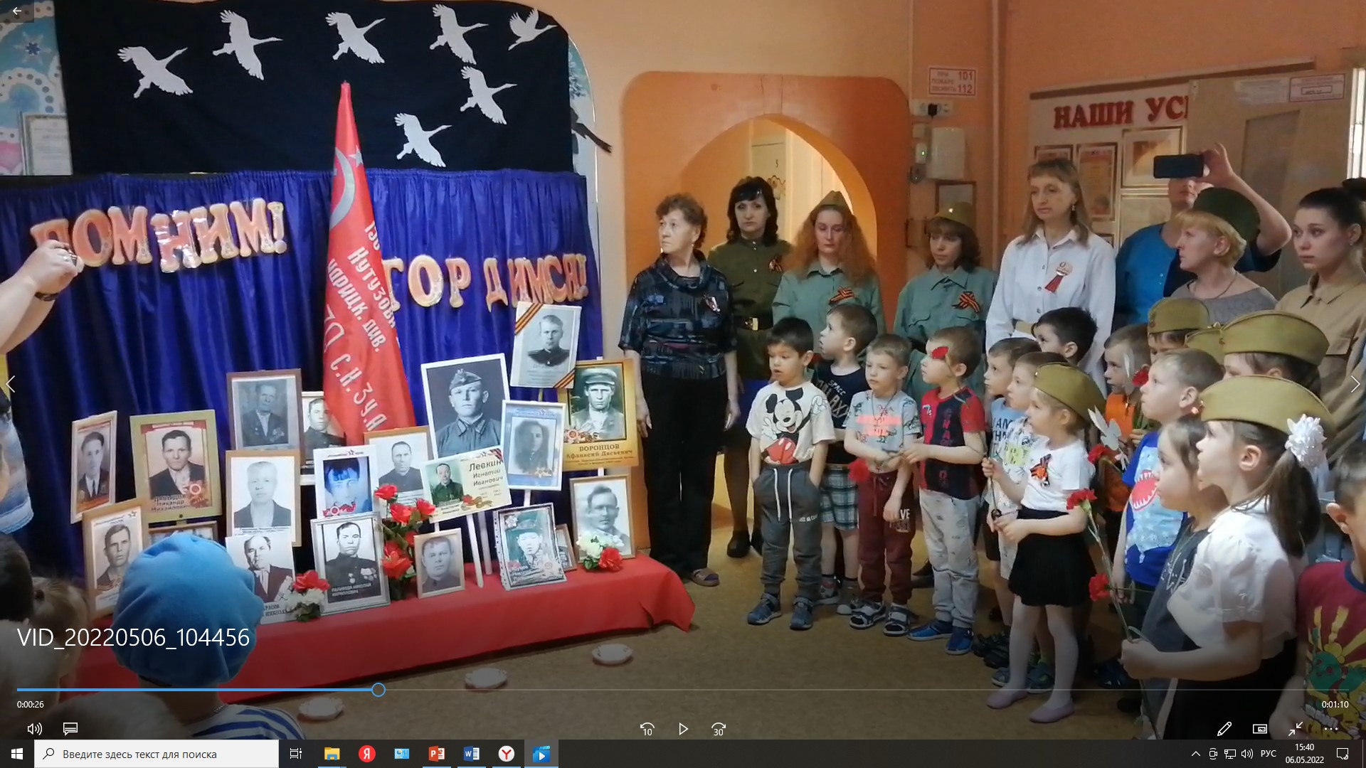 – Если в прошлом году из-за пандемии и ограничения участников в общегородских мероприятиях мы организовали для ребят шествие «Бессмертного полка» на территории своего детского сада, то сегодня мы расширили рамки праздника Победы. Первая его часть была более торжественной и посвящалась урокам мужества и героизма советского народа в годы Великой Отечественной войны. Вторая – более развлекательная. Детям нужно не только проникнуться чувствами и познаниями, но и насладиться свободой радости, которую мы получили в наследство от наших ветеранов. Дети принесли портреты своих родственников, ковавших Победу в тылу и на фронте, вместе с ними мы соорудили стену памяти. В минуту молчания взрослые зажгли свечи, ребята возложили к портретам гвоздики. На улице провели военно-спортивный квест, в ходе которого дети разыскивали боевое знамя. В завершении игры – традиционная солдатская каша на свежем воздухе.