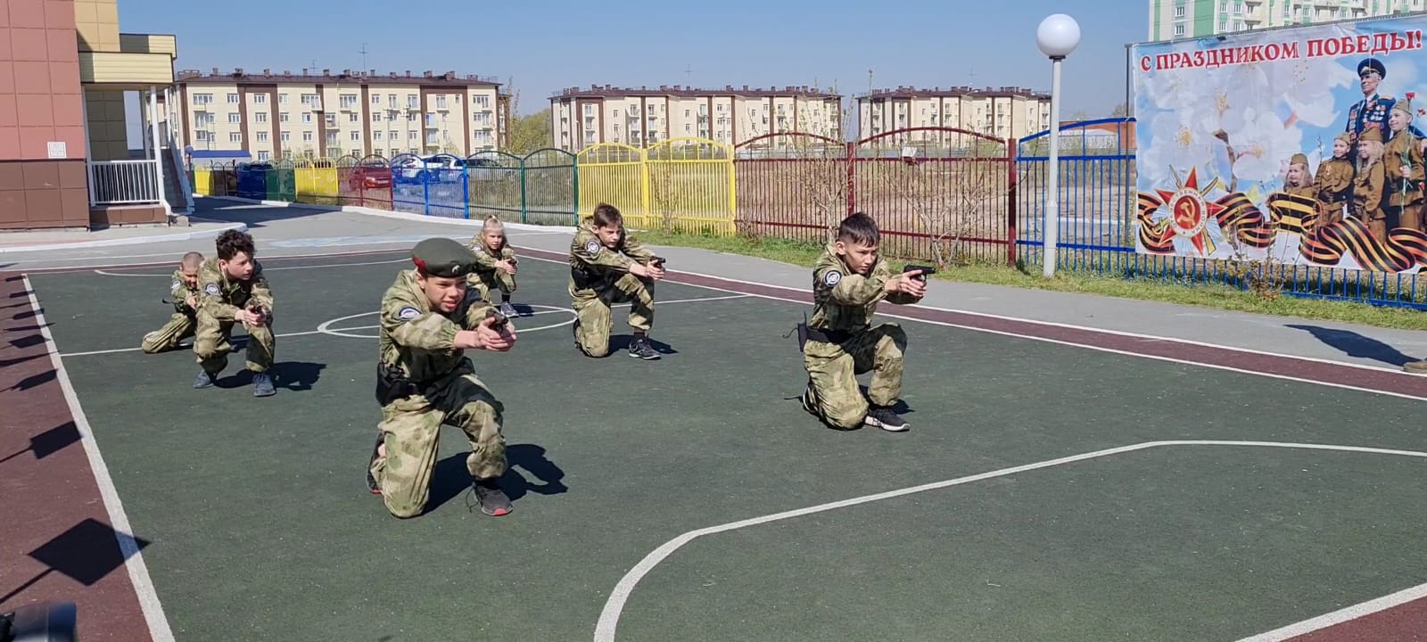 Было организовано сотрудничество с военно-спортивным клубом «Витязь – НСК». Дошкольники познакомились с боевым искусством, строением оружия, исполнили музыкально-танцевальную композицию, посвященную Дню Победы. Закончилось мероприятие торжественным салютом.