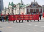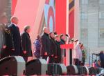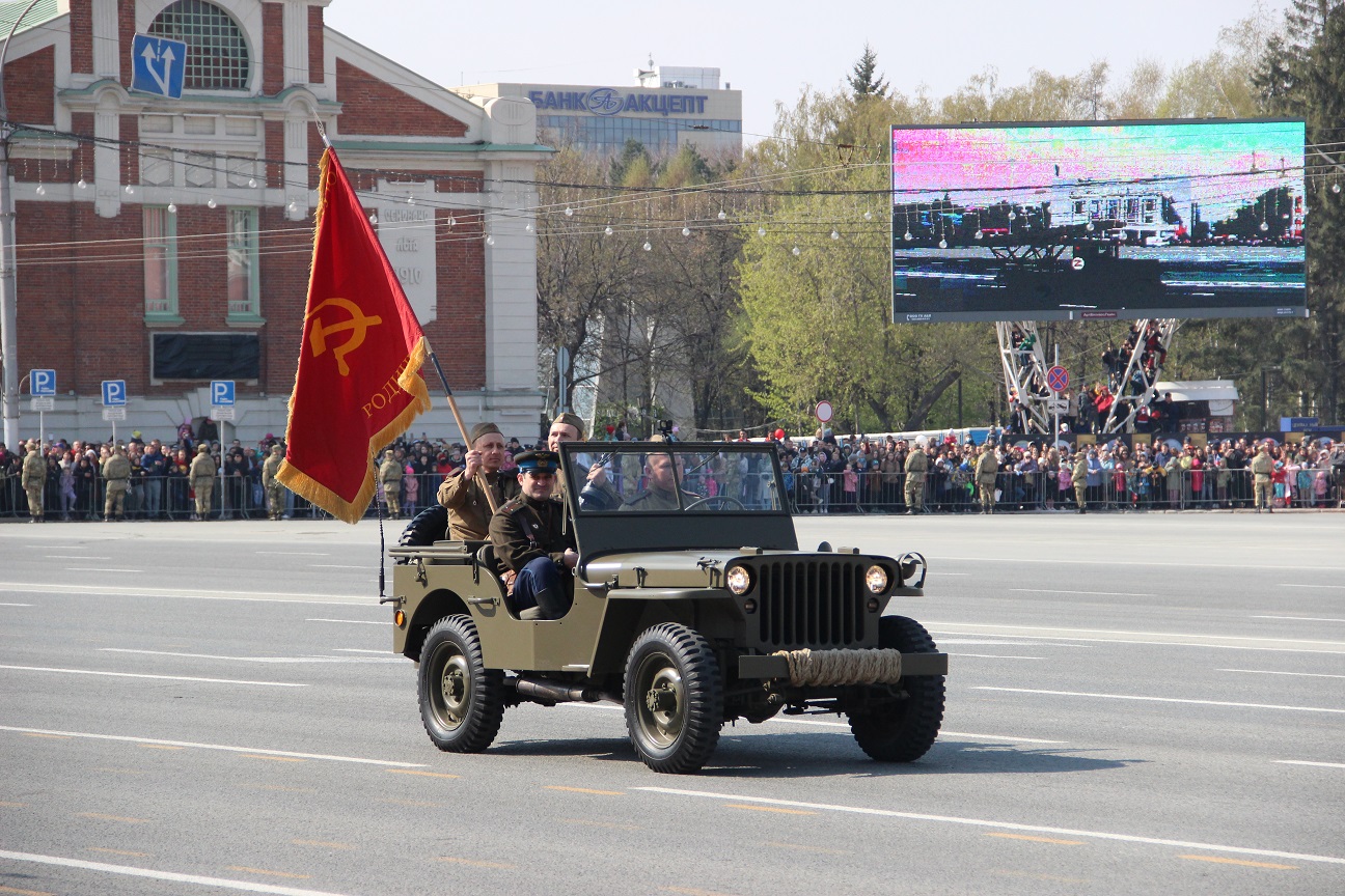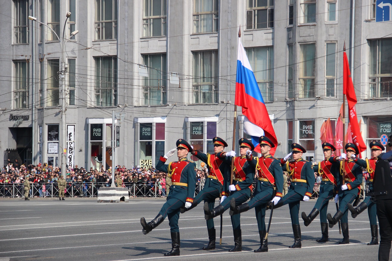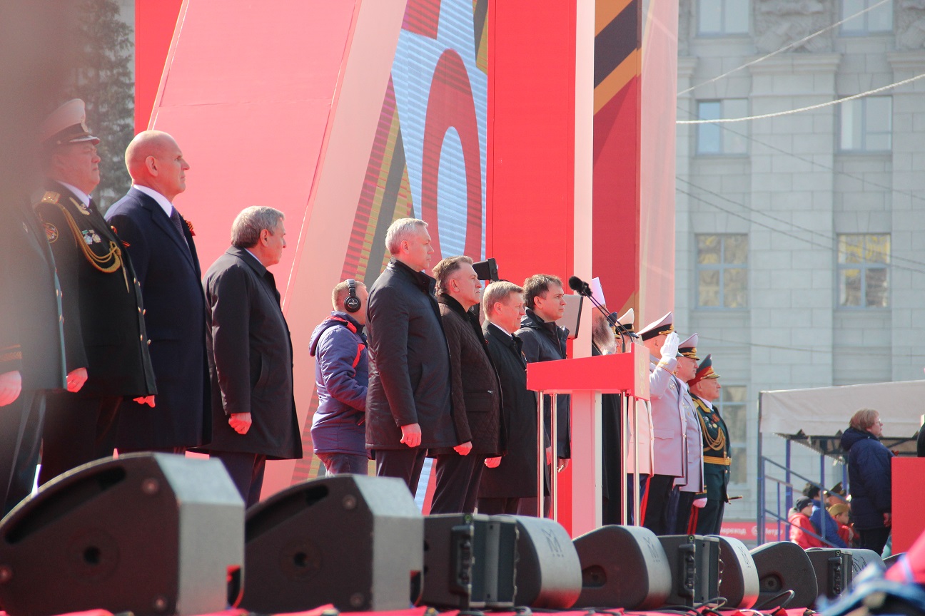 В завершение парада по площади Ленина пронесли знамя Победы, полотнище «Новосибирск – город трудовой доблести», флаги советских республик, которые символизируют единство народа в борьбе с фашизмом.