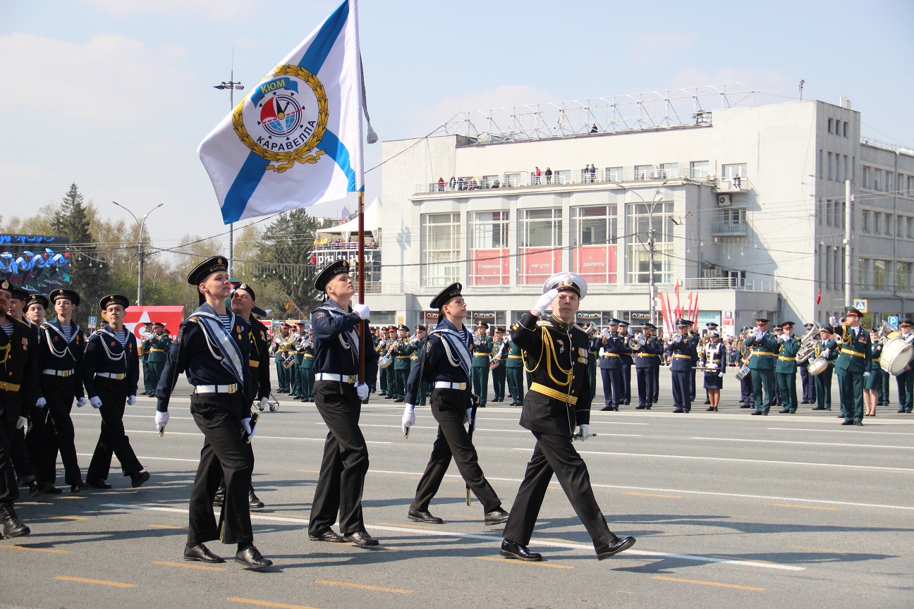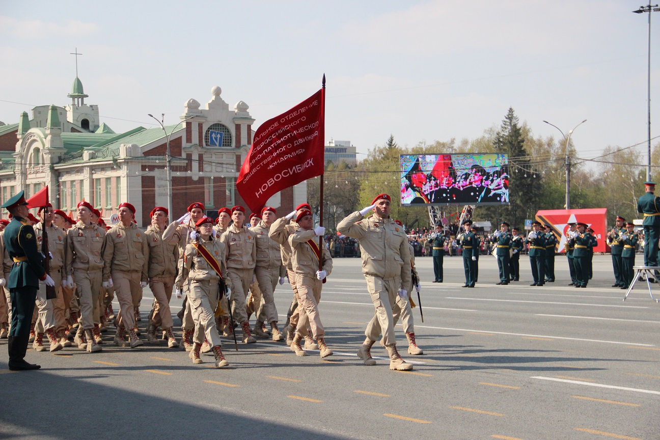 В параде Победы на площади имени Ленина участвовали 20 парадных расчетов. Торжественным маршем в параде прошли 220 новосибирских школьников – воспитанники Детского морского центра «Каравелла» имени А. Москаленко и воспитанники Всероссийского детско-юношеского военно-патриотического общественного движения «Юнармия».