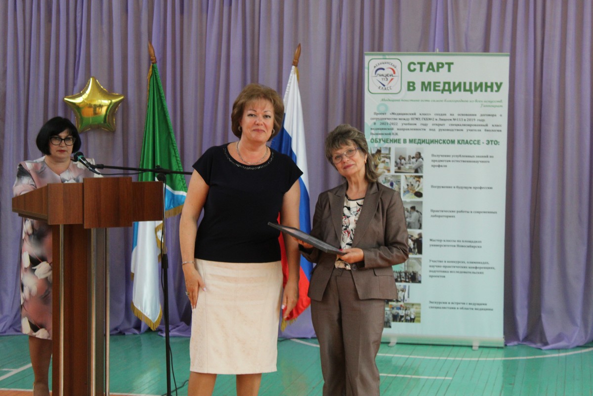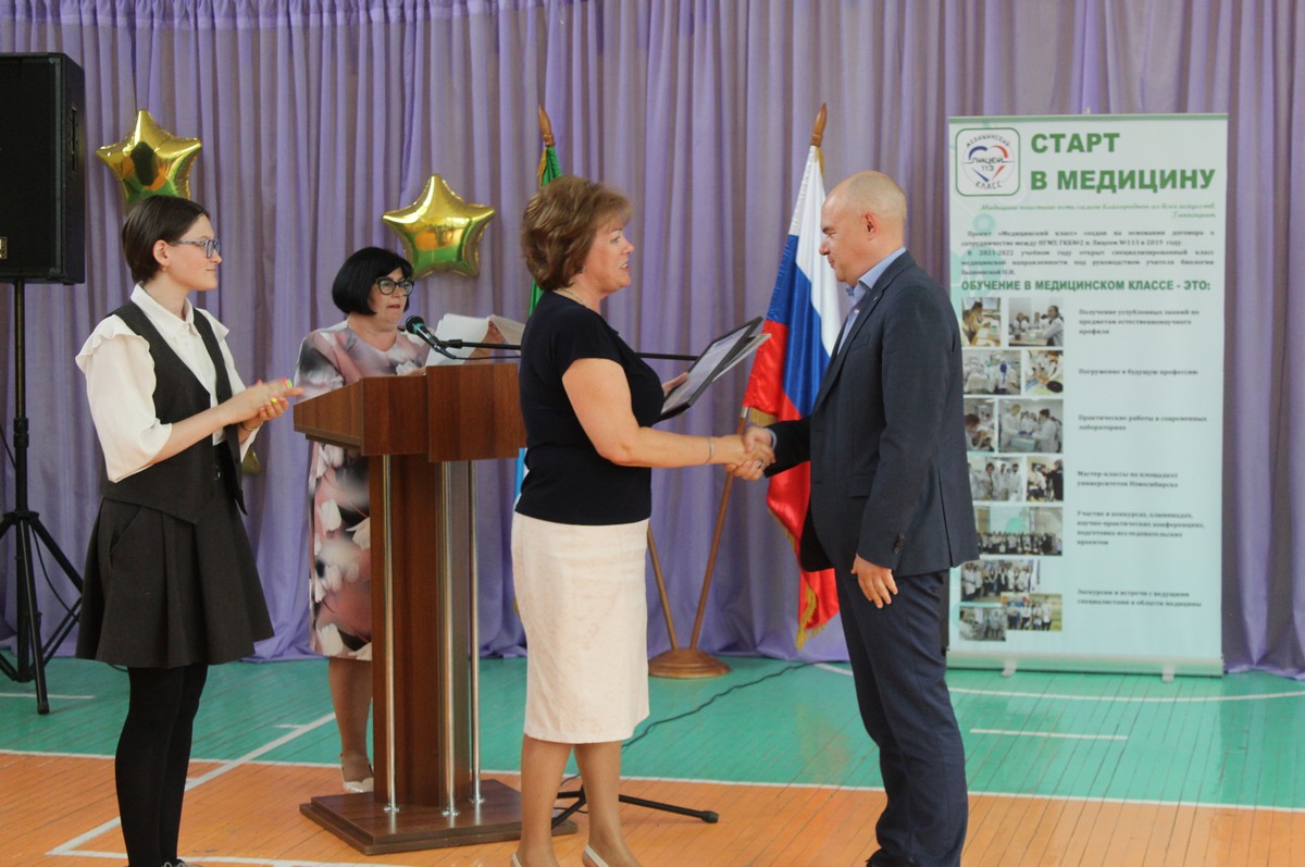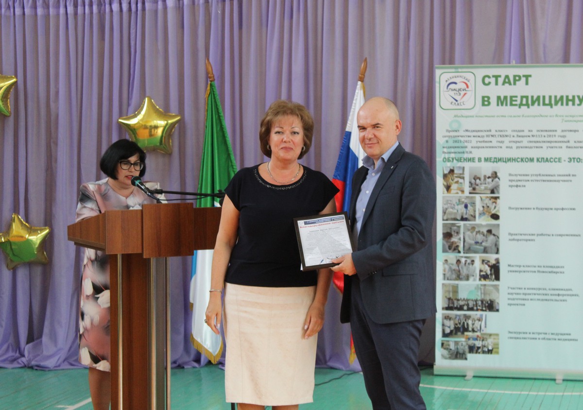 В ходе реализации регионального проекта «Медицинский класс» МБОУ Лицей №113 осуществляет сотрудничество с такими организациями как ФГБОУ ВО «НГМУ», ФГБОУ ВО Новосибирский ГАУ, ООО «Медицина», НИИТМП-филиал ИЦиГ СО РАН, ГБУЗ НСО «ГКБ №2», ГБУЗ НСО «ГП №17» и другими. На отчетной конференции партнерам лицея были вручены благодарственные письма и специальный выпуск лицейской газеты «Элемент 113», посвященный реализации проекта «Медицинский класс» в МБОУ Лицей №113. С ответным словом выступили Бакулин К.А, Пилипенко А.Н., Петровская А.В. Наши партнеры отметили важность реализации такого рода проекта, значимость осуществляемой совместной деятельности, поблагодарили педагогов, дали напутствия ребятам и родителям.