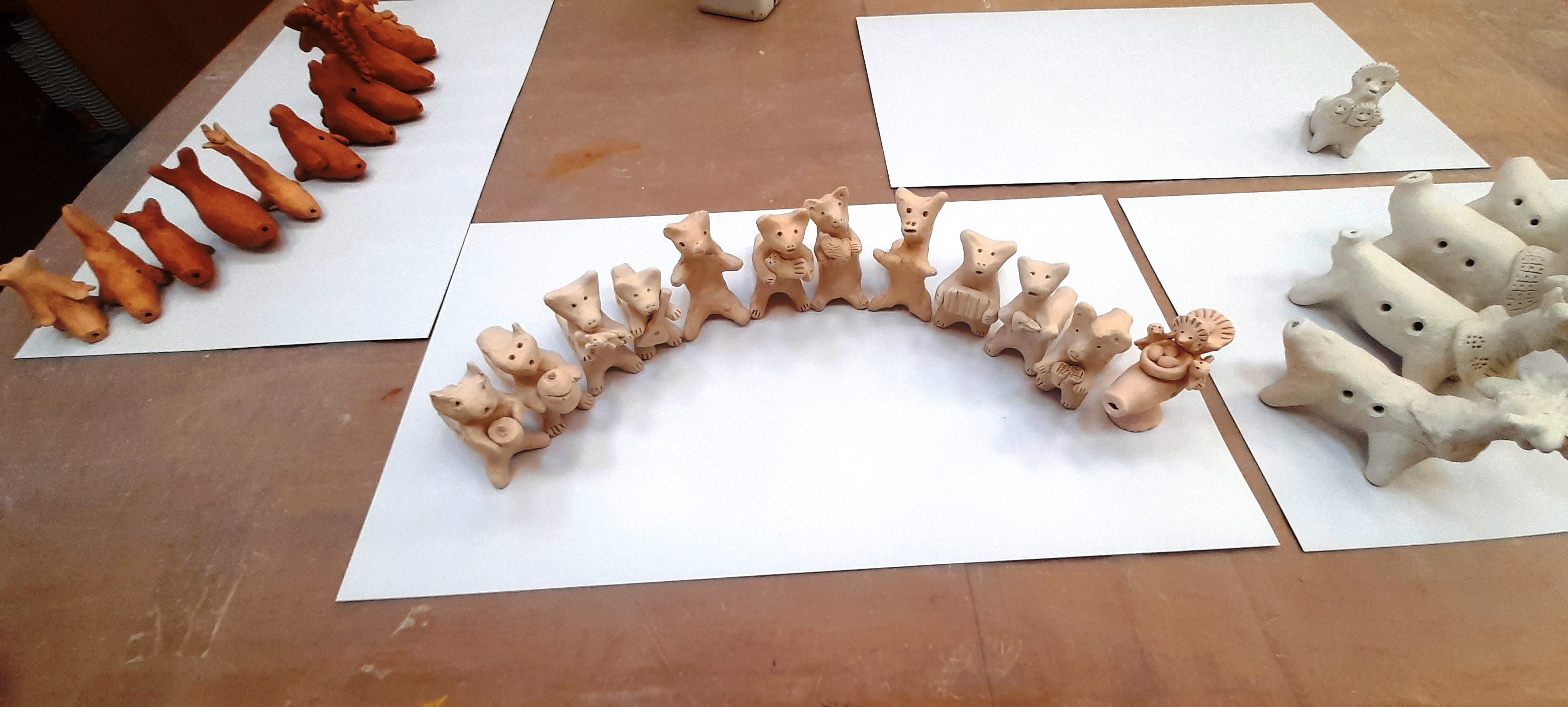 Дети словно побывали в гостях у мастеров, которые поделились секретами изготовления поющих игрушек. Сначала в селе Романово (сейчас Ленино) Липецкой области – узнали, как слепить Романовскую свистульку из глиняного «пельменя»: жаворонков, петуха, быка, оленей. Следующей была деревня Петровское Костромской области, где, научились делать Петровскую узорную игрушку-свистульку: коней, птичек. А в деревне Хлуднёво Калужской области познакомились с Хлуднёвской игрушкой – свистульки получились сказочные: медведи с балалайкой, гармонью, лаптями. Участники смены завершили своё путешествие в городе Торжке Тверской области, где слепили нарядную Тверскую (Новоторжокскую) свистульку – птиц и лошадок. После обжига все свистульки раскрасили, как мастера научили.