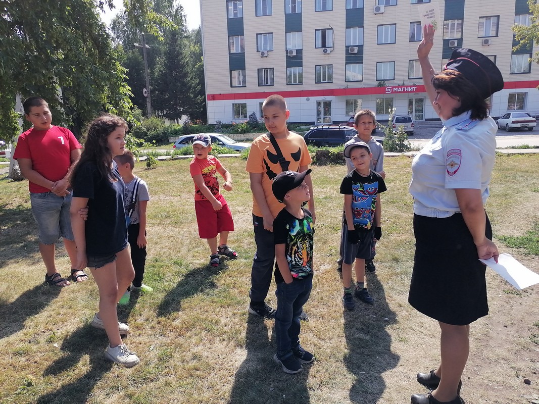 В ходе мероприятия сотрудники ГИБДД напомнили детям о безопасном поведении на улице и во дворе, об осторожности при катании на самокатах, велосипедах и иных средствах индивидуальной мобильности, опасности выхода на проезжую часть из-за припаркованного транспорта. Дети в игровой форме закрепили знания о Правилах дорожного движения в качестве пешеходов, пассажиров и водителей.
