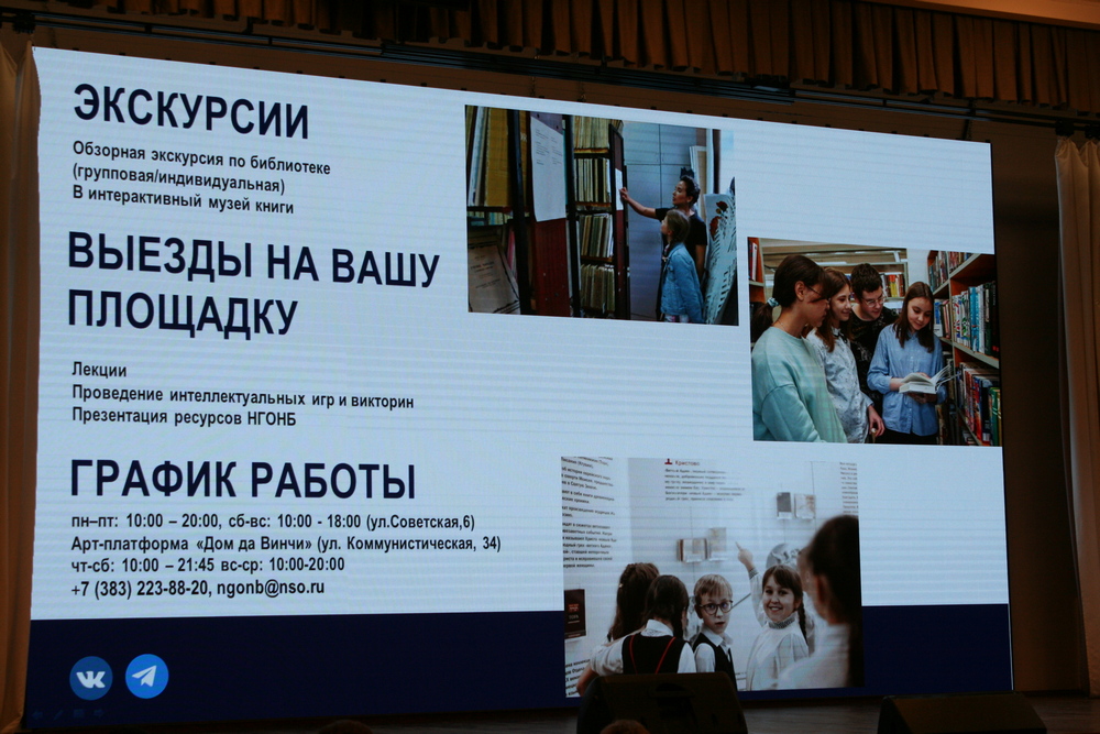 Новосибирская государственная областная научная библиотека занимает одно из лидирующих мест в развитии библиотечного дела всего Сибирского региона. Это региональный центр по работе с книжными памятниками; координатор библиотечного краеведения; центр по развитию библиотечных технологий в государственных и муниципальных библиотеках области; общедоступный культурно-просветительский и образовательный центр. Светлана Антоновна рассказала об открытии в городе и области модельных библиотек с хорошими укомплектованными фондами по национальному проекту «Культура», об электронных коллекциях библиотеки, мобильном краеведческом путеводителе по Новосибирску «Городская сова», многочисленных мероприятиях НГОНБ на разных площадках для детей и взрослых. Директор областной библиотеки предложила консультационную помощь школам города, как подключиться к библиотечным ресурсам удаленного доступа: Всенаука, НЭБ, ЛитРес, ПроДетЛит, Национальной электронной детской библиотеке. Чтобы дети больше читали, областная библиотека готова даже на договорной основе привозить подборки современной литературы для детей и подростков в школы города.