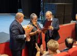 В завершение мероприятия состоялось награждение работников образовательных организаций муниципальной системы образования города Новосибирска по итогам 2021/2022 учебного года Благодарностями Губернатора Новосибирской области, Благодарственными письмами Совета депутатов города Новосибирска, Почетными грамотами и Благодарностями мэрии города Новосибирска. Памятные знаки «За верность званию «Учитель» вручены руководителям образовательных организаций, завершивших свою профессиональную деятельность.