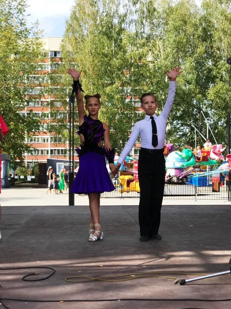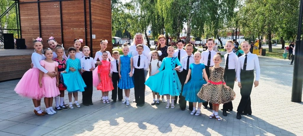 Чуть позже учащиеся педагогов Чусовитиной Е.А. и Даниловой Н.С. приняли участие в концертной программе «Снова в стране знаний». На сцене парка «Затулинский» Кировского района юные танцоры педагога Даниловой Н.С. исполнили озорной танец «Ча ча ча».