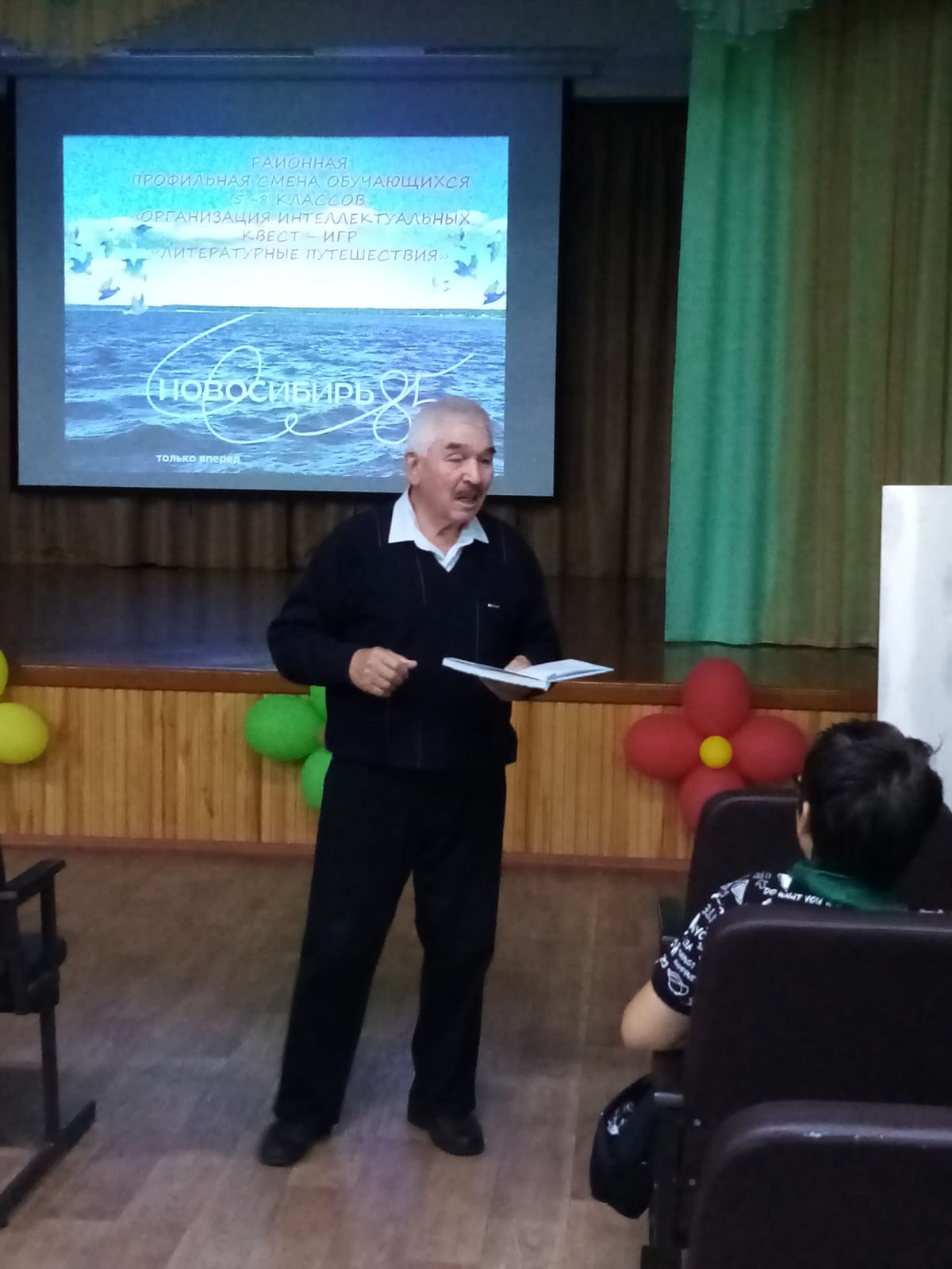После завтрака к ребятам приехал Владимир Павлович Романов, член новосибирского правления Союза писателей России с разговором о важном. В этот день в смене звучали его стихи, увлекательные рассказы о жизни в разное время. Было очень познавательно и интересно!