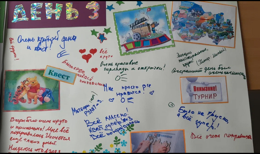 Итогом насыщенного меняющимися событиями дня стали боевые листки «День первый» с впечатлениями и отзывами. В этот день появилась традиция оставлять свои эмоции в виде смайликов на пробковой доске.