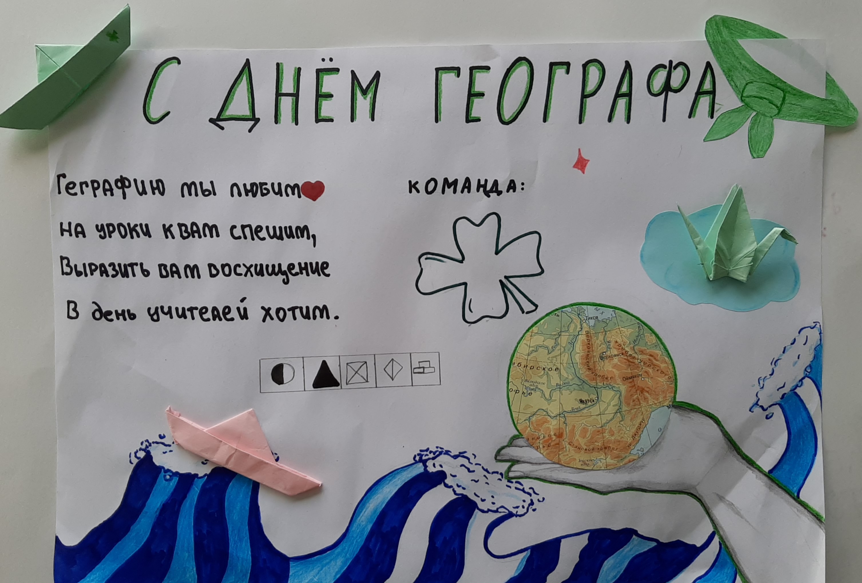 Вдохновленные впечатлениями от увиденного и услышанного, ребята переместились в творческую лабораторию, где смастерили поздравительные открытки своим учителям географии и украсили аудиторию географическими гирляндами, сделанными своими руками.