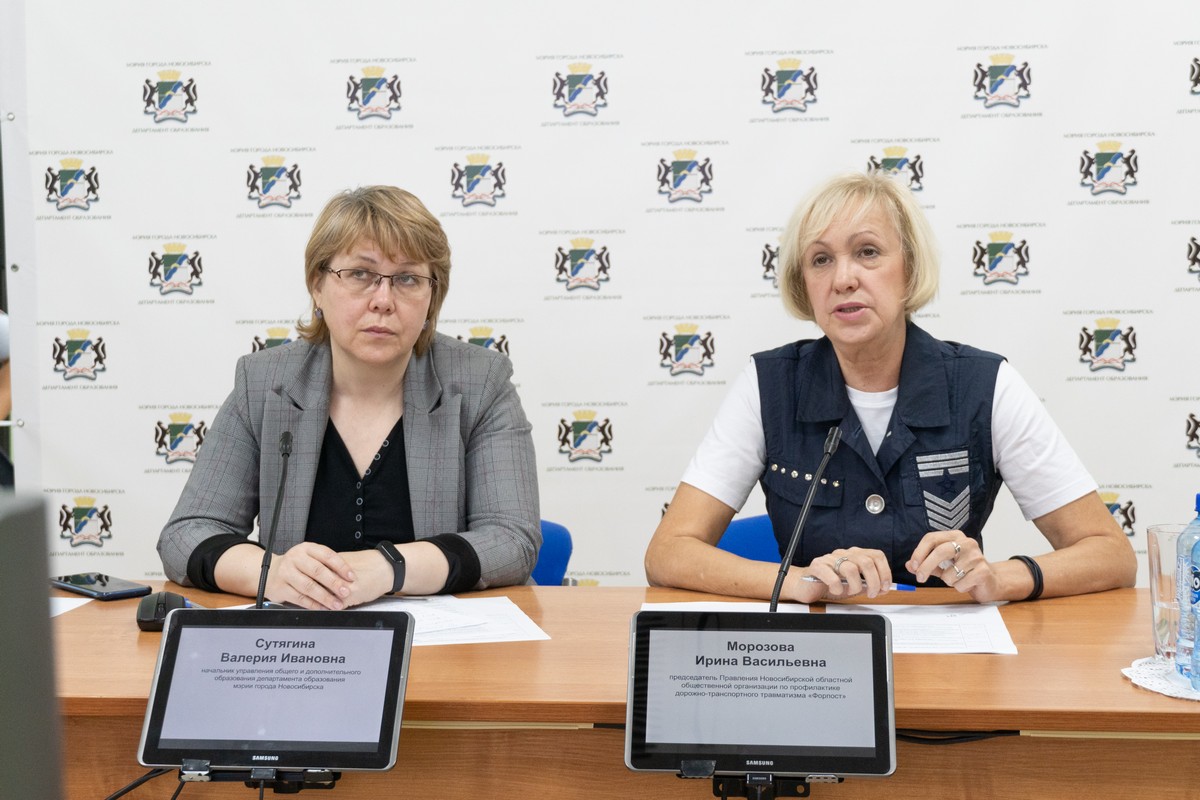 Встречу с родителями учащихся провели Валерия Ивановна Сутягина, начальник управления общего и дополнительного образования мэрии города Новосибирска, и Ирина Васильевна Морозова, председатель правления Новосибирской областной общественной организации по профилактике дорожно-транспортного травматизма «Форпост».