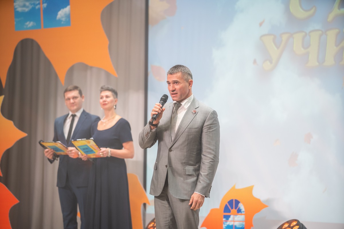 «Я считаю, что школьное образование в городе Новосибирске является одним из лучших в стране, и тому есть множество подтверждений. Так, завтра состоится полет на МКС космического корабля с международным экипажем на борту, в составе которого – единственная на сегодня женщина в российском отряде космонавтов Анна Кикина, закончившая школу №29 города Новосибирска, – отметил мэр города Новосибирска Анатолий Евгеньевич Локоть, обращаясь к участникам встречи. – Наше образование позволяет ребятам раскрываться, становиться гражданами своей страны: в этом главная роль и заслуга Учителя. Время диктует новые сложные задачи, и вам приходится искать особые педагогические подходы для того, чтобы их решать. Но я уверен в вас. От имени всех новосибирцев благодарю вас, дорогие учителя, за то, что вы делаете для наших детей, во имя нашего будущего. От всей души желаю вам успеха в вашем нелегком, благородном и таком нужном труде. С праздником! С Днём учителя!».