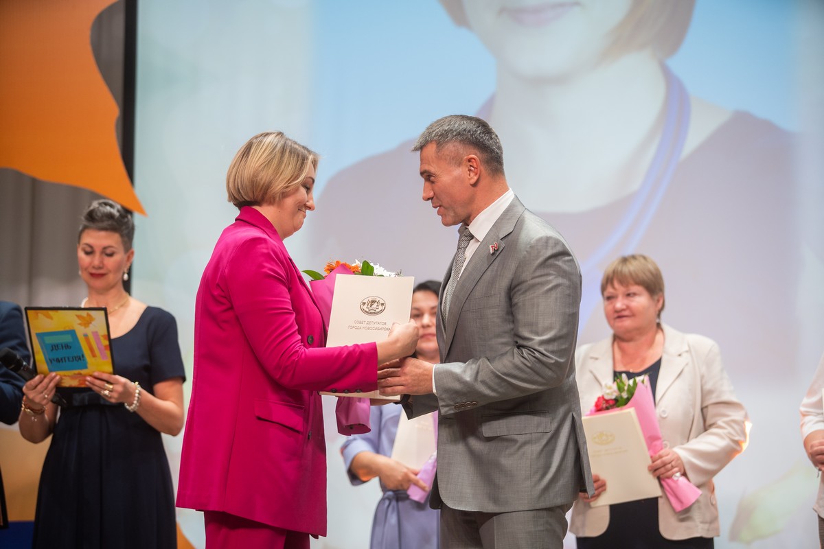 На празднике традиционно состоялось чествование лучших новосибирских учителей, педагогов и руководителей, ставших победителями всероссийских и международных конкурсов. За многолетний добросовестный труд и высокие результаты в профессиональной деятельности работникам образовательных организаций вручены Почетные грамоты и Благодарности мэрии города Новосибирска, Благодарственные письма Совета депутатов города Новосибирска, департамента по социальной политике мэрии города Новосибирска.