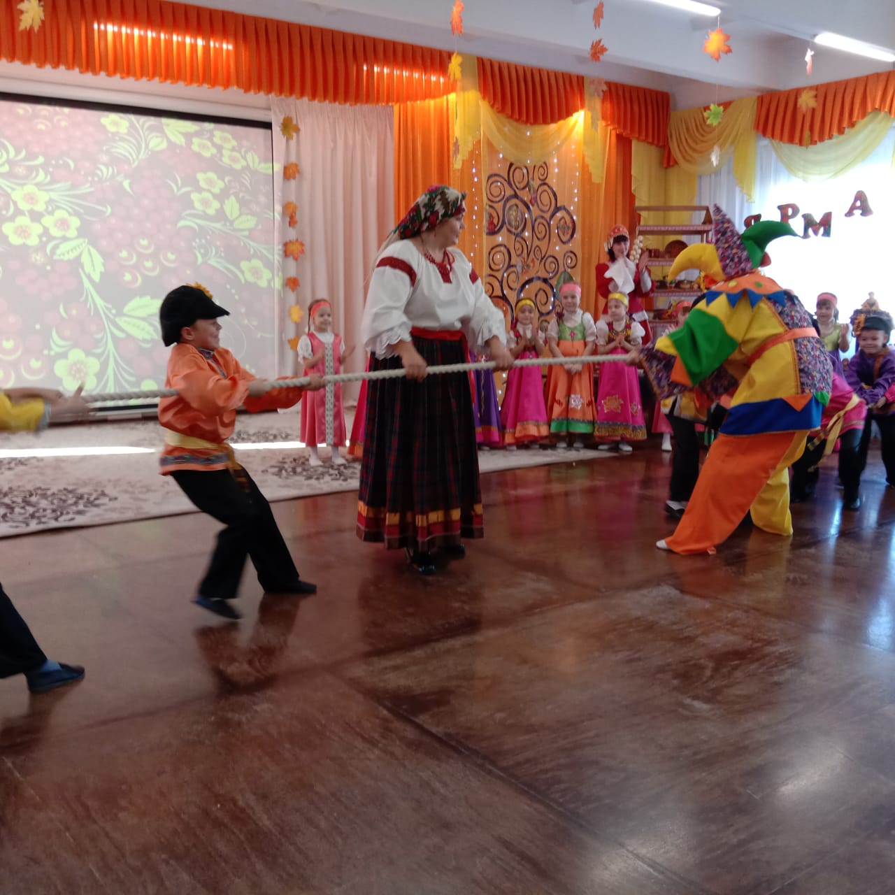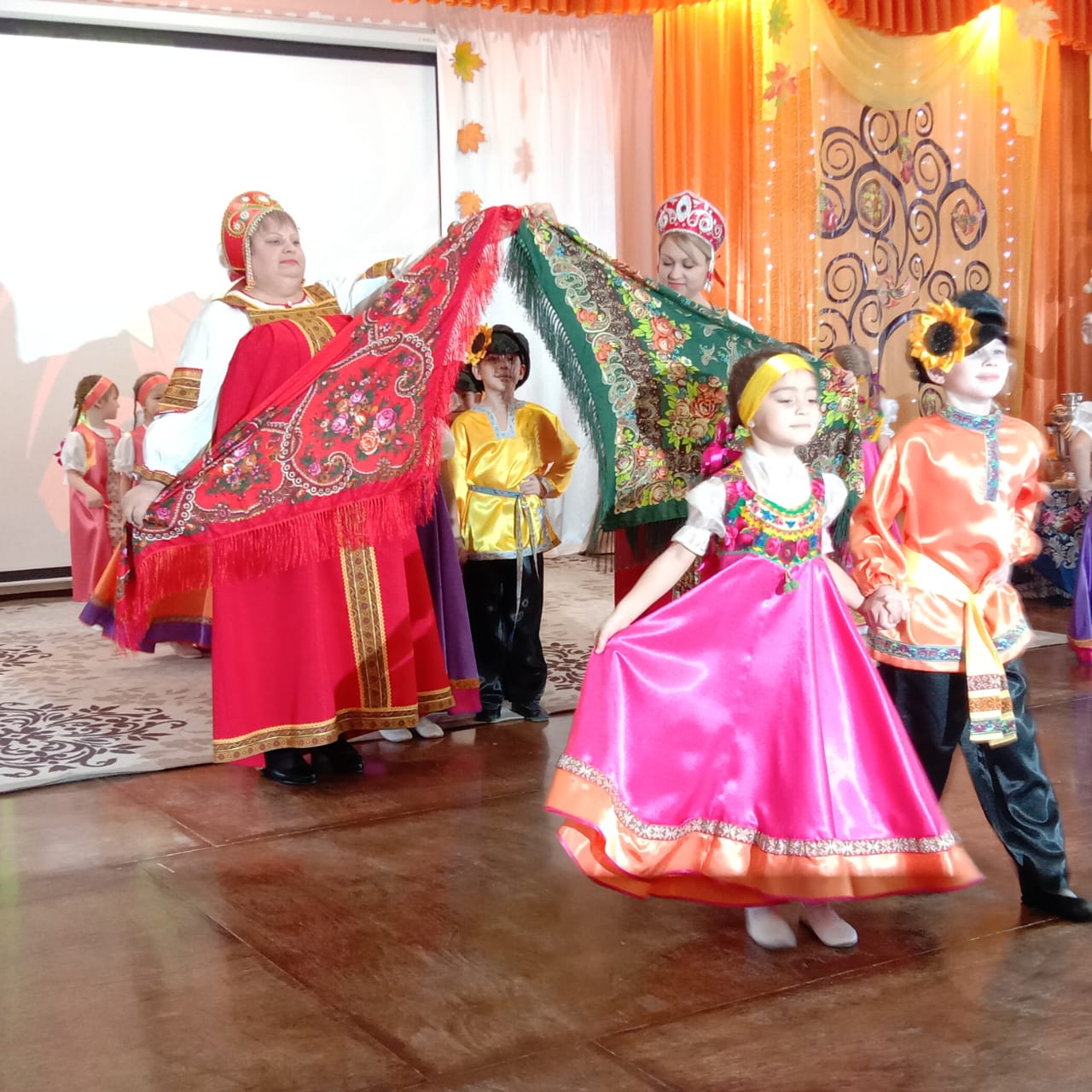 Завершилось городское мероприятие ярморочными гуляниями, которые представили Корабельникова Татьяна Валерьевна, музыкальный руководитель, Некрасова Наталья Михайловна, Цуран Анастасия Александровна, воспитатели детского сада № 465, и воспитанники старшей группы дошкольного учреждения. Все участники мероприятия вместе с детьми погрузились в атмосферу русского народного гуляния с его обычаями и традициями, пели задорные частушки, играли на ложках, танцевали весёлый карапет и водили хороводы. А русская народная музыка, яркие народные костюмы показали весь колорит народного осеннего гуляния и широту души русского народа.