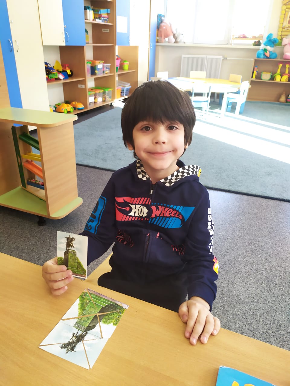 Ребята узнали об истории возникновения праздника, посмотрели видеосюжет по теме, собирали пазлы с изображением знаменательных и памятных мест нашей Родины. Также дошкольники по группам выполнили коллективные творческие работы на тему «Мы едины».