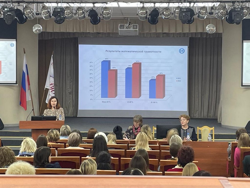 С приветственным словом к участникам мероприятия обратилась Наталья Анатольевна Степанова, старший методист МАУ ДПО «НИСО», куратор ММО учителей начальных классов. Наталья Анатольевна познакомила педагогов с результатами участия младших школьников в педагогической диагностике по оценке уровня сформированности функциональной грамотности, представила динамику результатов за последние два года и электронные ресурсы по формированию функциональной грамотности.