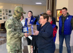 Также в рамках акции «Мы вместе» в торжественной обстановке депутат Законодательного собрания Елена Спасских лично передала квадрокоптеры, медикаменты, предметы гуманитарной помощи и послания со словами благодарности от жителей Новосибирской области представителю отряда.