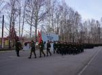 После построения совместно с военнослужащими юнармейцы прошлись по центральной улице жилого района Гвардейский до площади, где находится стела Героям Великой Отечественной войны.