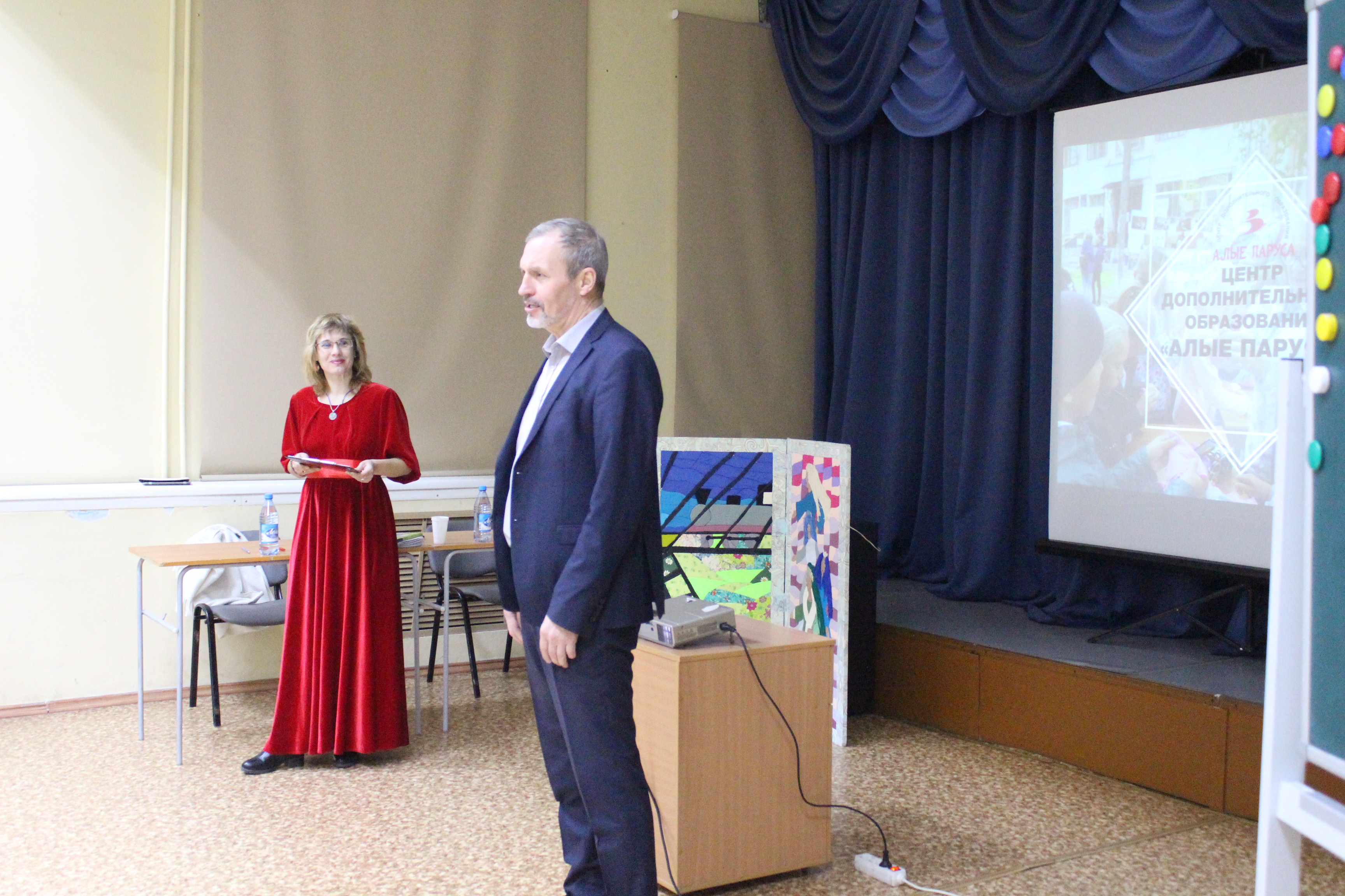 Заместитель директора по МиПР МБУДО ЦДО «Алые паруса» Наталья Владимировна Шестакова рассказала про воспитательный потенциал социокультурной среды. А также пригласила руководителей к участию в проекте «Край», направленном на создание краеведческих медиапроектов на основе углубленного знакомства с социокультурной средой, историей своей малой Родины и краеведческими фактами социально-экономического развития города Новосибирска.