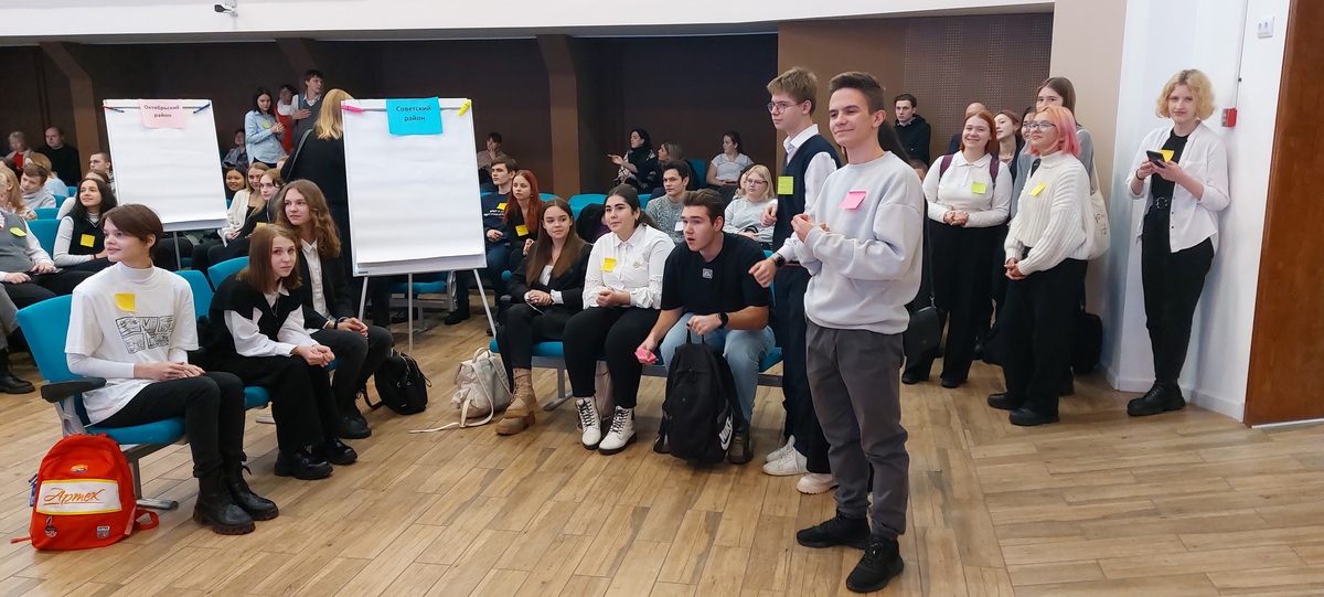 При проведении общего сбора была организована работа интерактивных площадок по районам города, на которых ребята знакомились друг с другом, общались, выполняли задания и презентовали их.