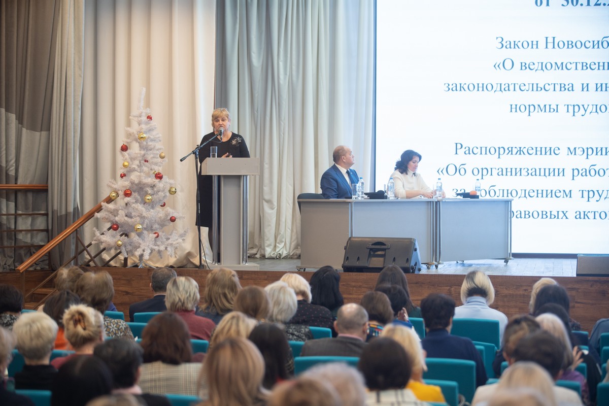 Начальник управления кадрового и организационно-правового обеспечения в сфере образования департамента образования мэрии города Новосибирска Ирина Ивановна Тарасова в своем выступлении раскрыла вопросы осуществления ведомственного контроля за соблюдением трудового законодательства в муниципальных образовательных организациях и иных нормативных правовых актов, содержащих нормы трудового права.