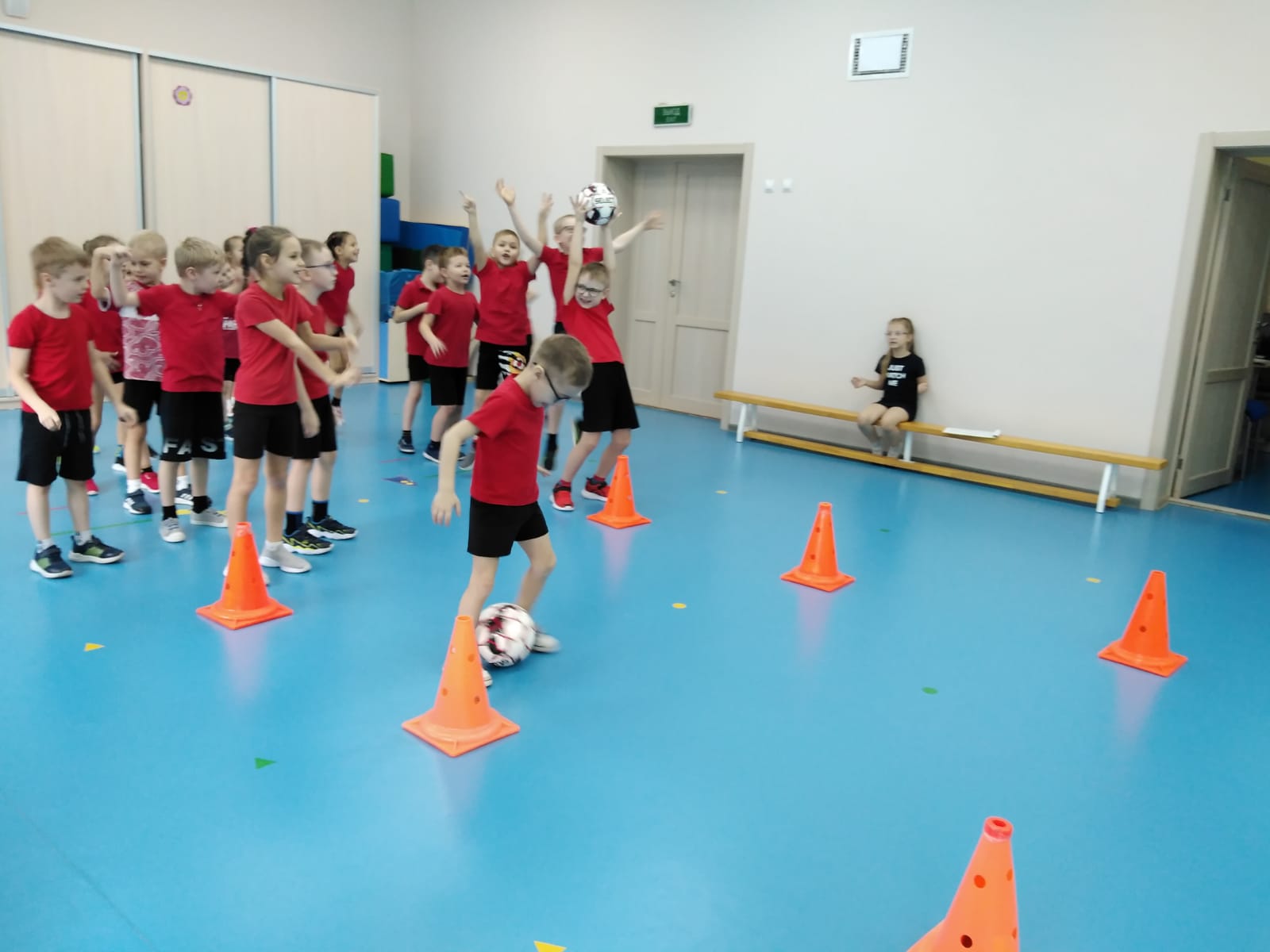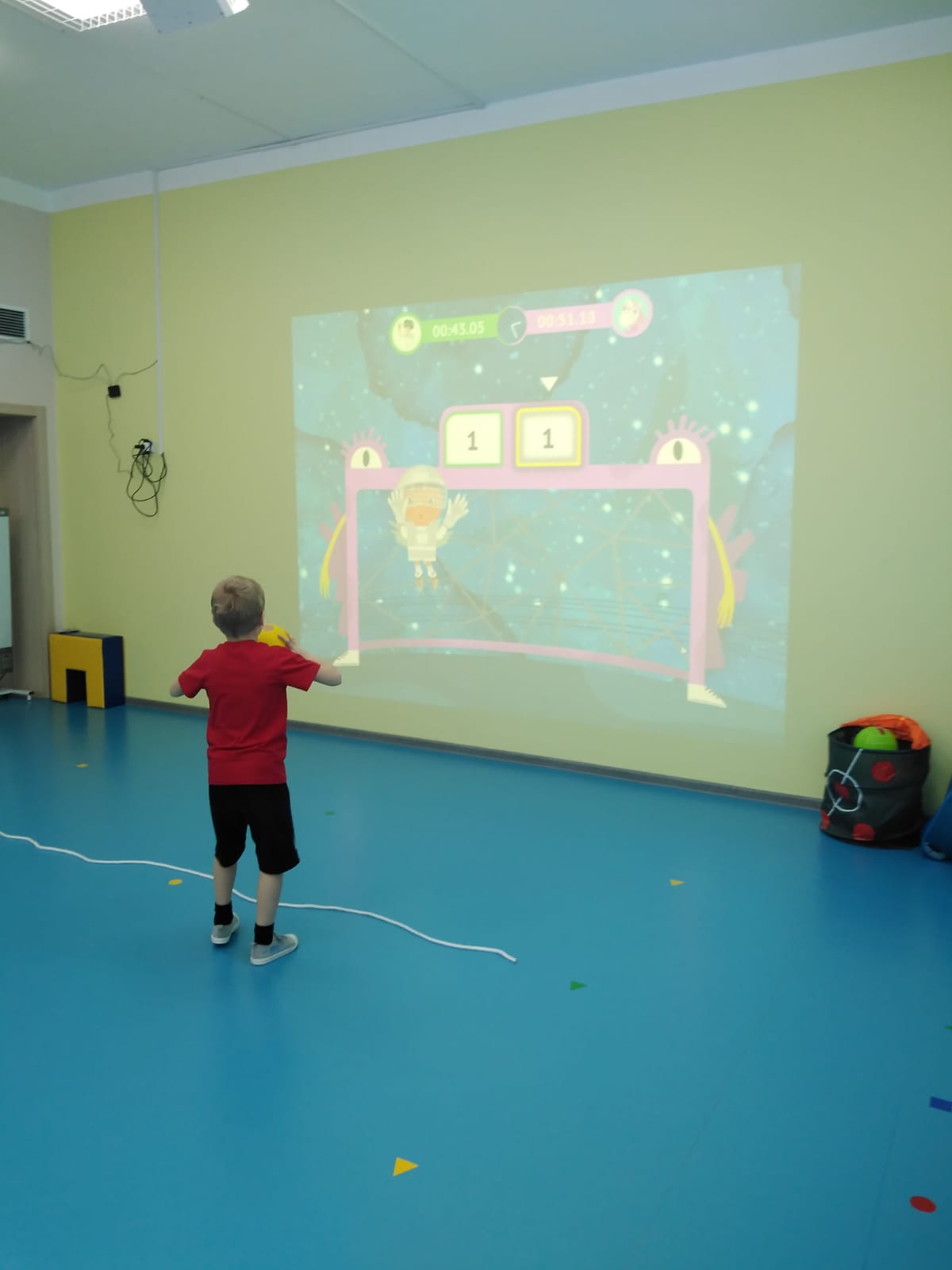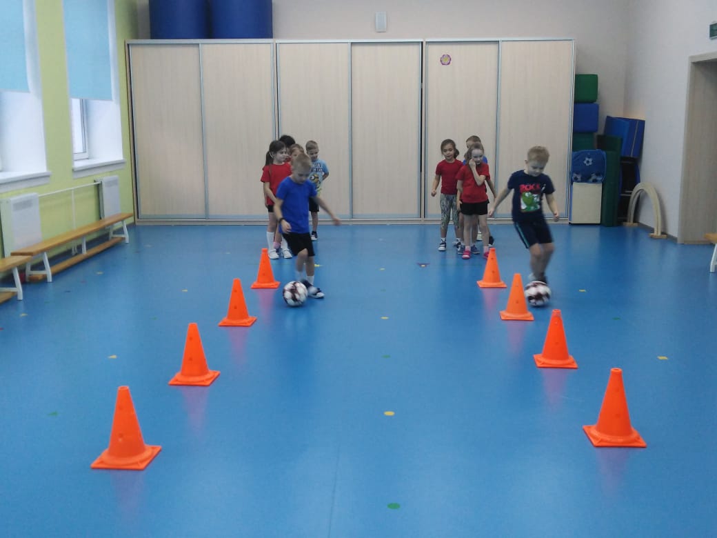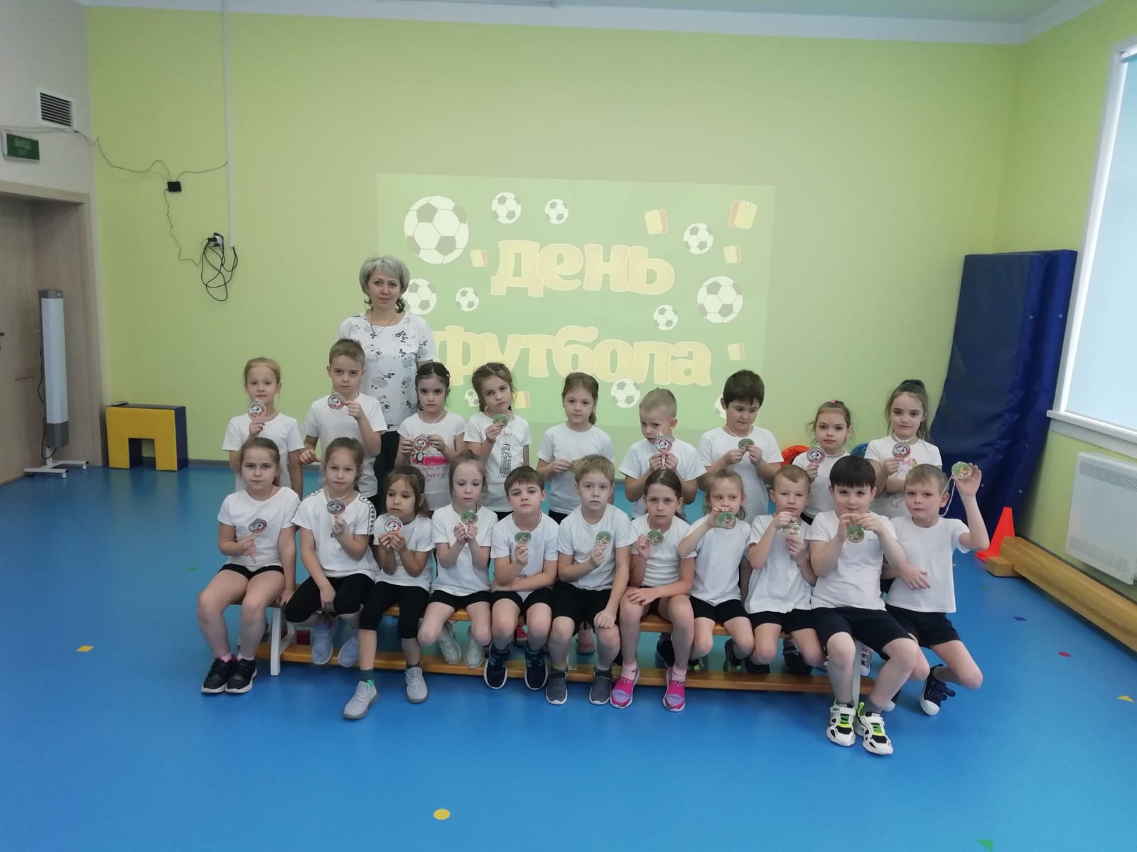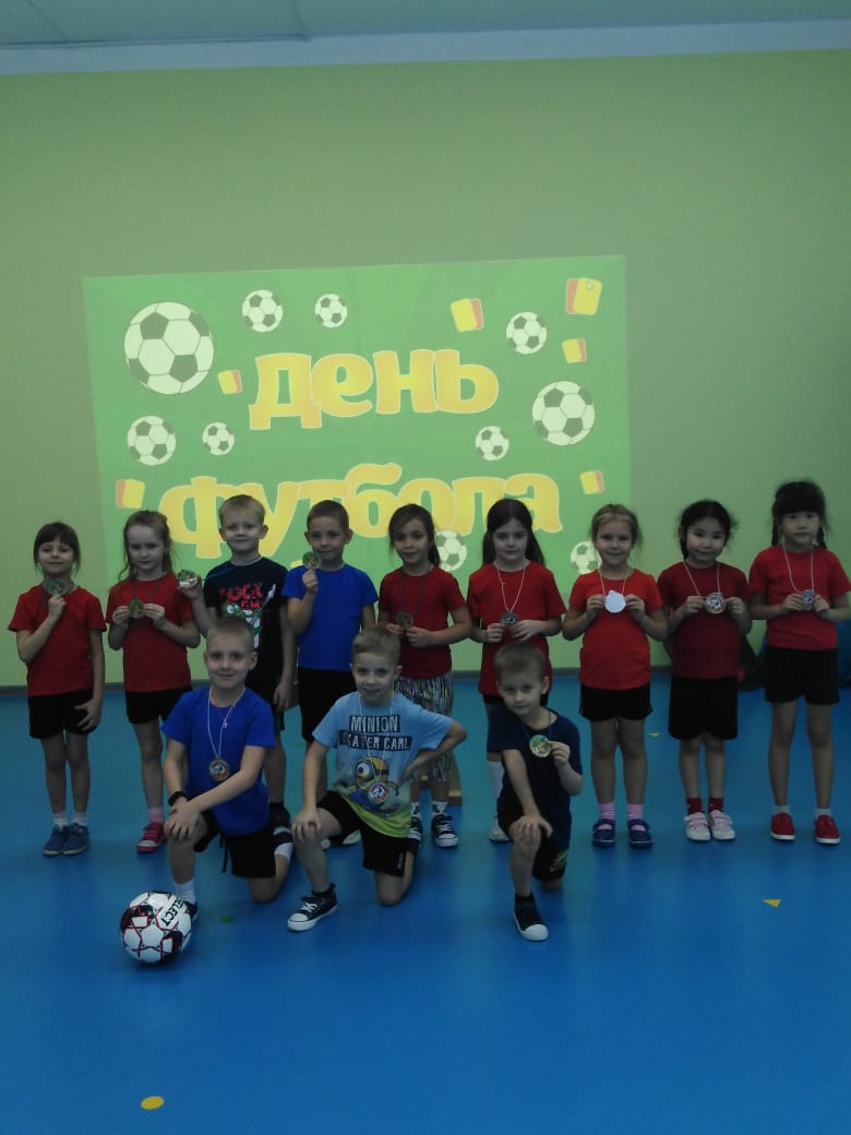На один день спортивный зал детского сада превратился в футбольный стадион. У детей, как у настоящих футболистов, прошла разминка с различными видами бега, ходьбы, упражнений для рук и ног, а затем футбольные эстафеты между командами. Они передавали мяч над головой с продвижением вперёд, вели его «змейкой», ногами по прямой. Ребята учились останавливать мяч ногой, забивали мяч в ворота с помощью ног и рук, используя интерактивный физкультурный комплекс. Участники команд проявили ловкость, быстроту реакции, точность, координацию движений, мгновенную ориентацию в пространстве, спортивную выдержку, решительность и смелость. Завершилось празднование вручением медалей и дипломов. Дети получили удовольствие от движения и от общения со сверстниками.