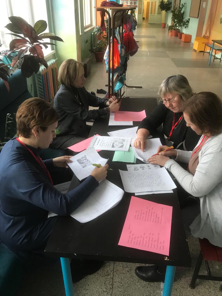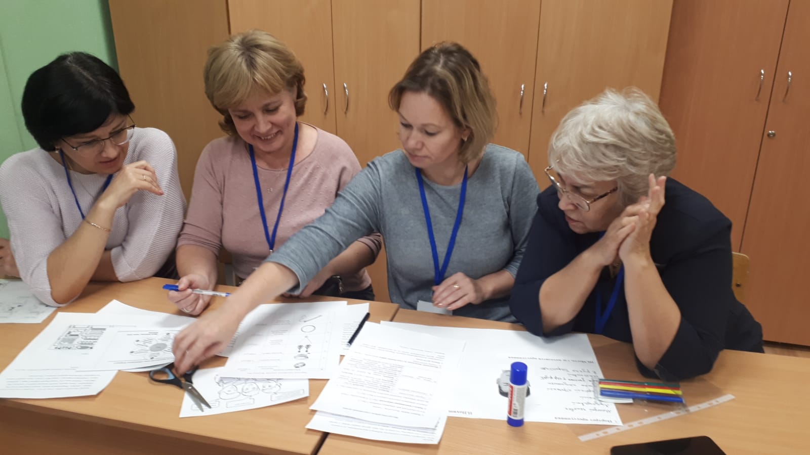 В локации «Магазин» Марина Анатольевна Тайкина предложила решить проектную задачу и в соответствии со своим выбором наполнить продуктовую корзину. В локации «Туристическое агентство» Юлия Васильевна Якуничкина предложила участникам семинара составить маршрут своего путешествия с различными экскурсиями. С помощью Татьяны Васильевны Арисовой и Ольги Васильевны Мельниковой в локации «Аэропорт» участники семинара заполнили паспорта, нашли свое место в самолете и после прочтения статей в «Первоклассной газете» обозначили на карте область или край, о которых только что прочитали. В локации «Детективное агентство» Людмила Владимировна Головина предложила задания, решение которых помогло найти преступника.