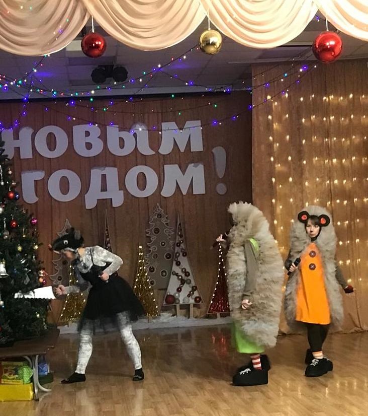 Веселые и смелые ёжики Ириска и Фома берегут новогоднюю ёлочку для праздника, а Мышильда Леопольдовна замыслила коварный план, как украсть ёлку. Но как же на новогоднем празднике без Деда Мороза и Снегурочки? Они помогают героям спасти новогодний праздник и вместе с детьми водят хороводы, поют новогодние песни, играют в зажигательные игры. Веселое, волшебное настроение царит на новогодних театрализованных представлениях.