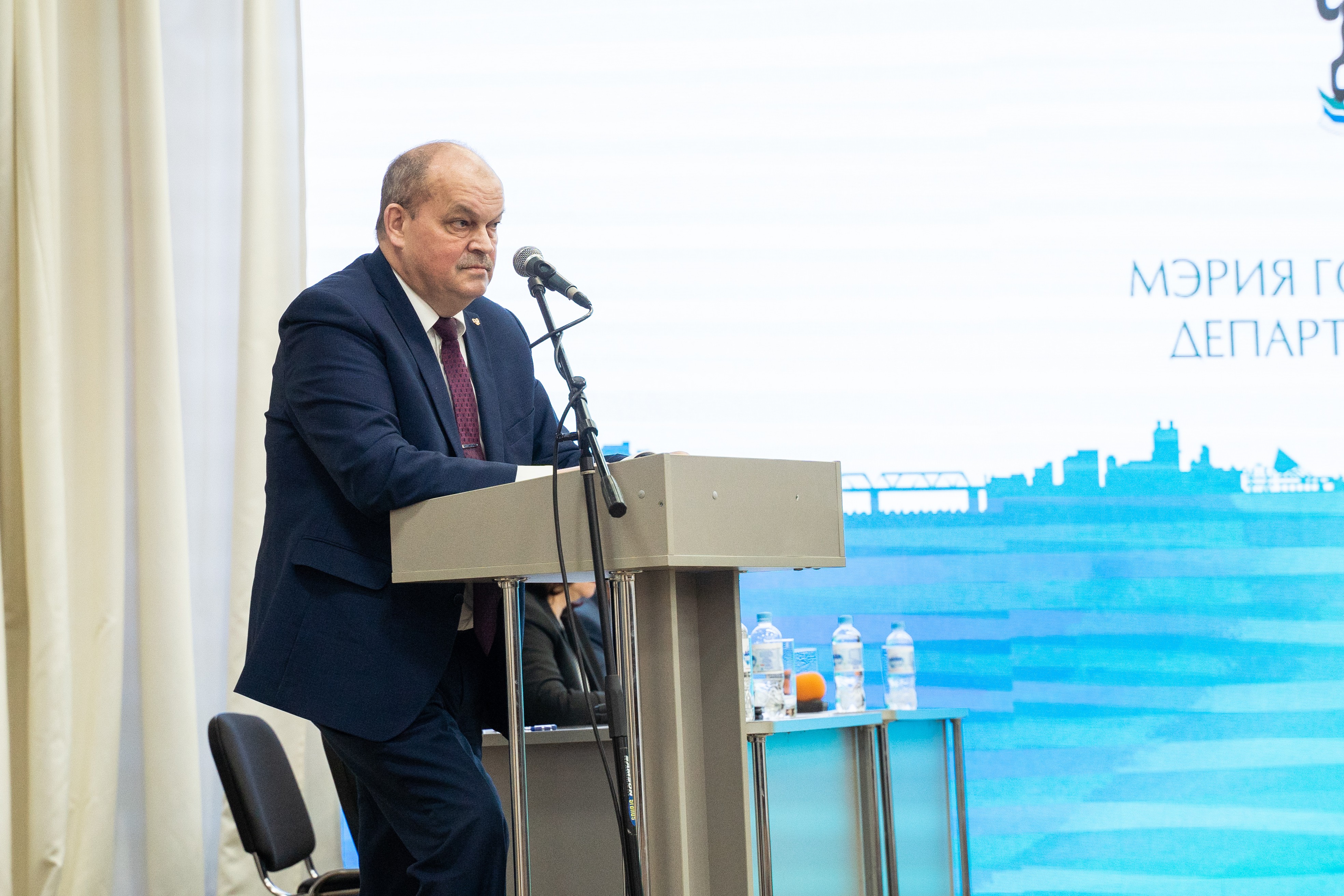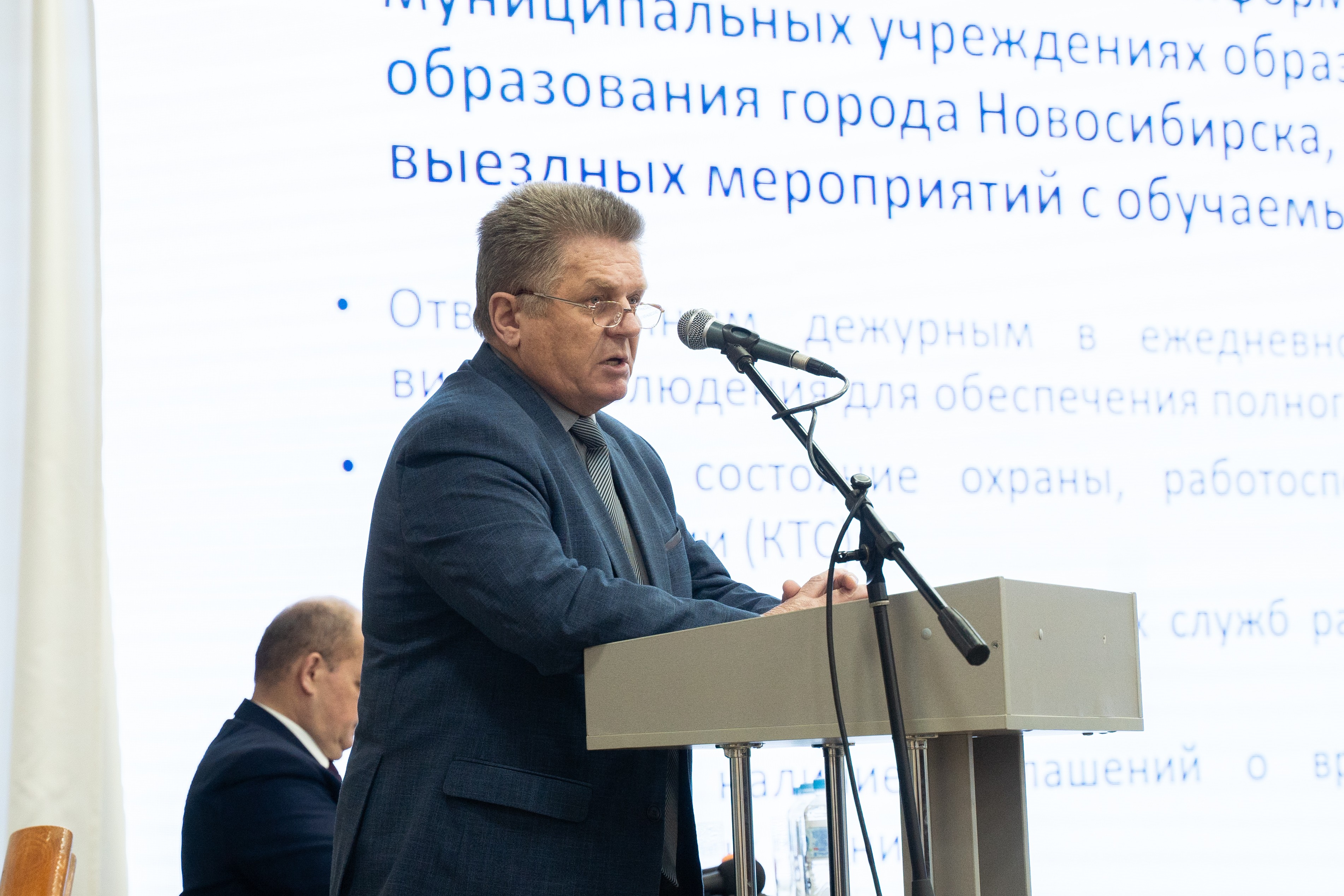 Сергей Алексеевич Казаков, заместитель начальника департамента образования мэрии города Новосибирска, остановился на вопросах ведения финансово-хозяйственной деятельности, организации питания обучающихся, обратил особое внимание на обеспечение безопасности образовательного пространства и антитеррористической защищенности учреждений.