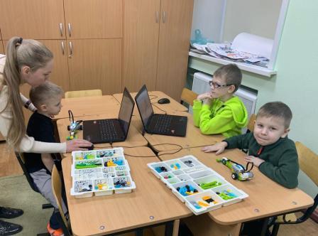 Мастер-класс проводился в рамках проекта «ТехноСфера». Полина Владимировна рассказала ребятам о принципах работы ременной передачи, основах конструирования и робототехники. Ребята познакомились с названиями ключевых деталей конструктора. В процессе сборки роботизированной модели дети с Надеждой Николаевной повторили виды транспорта и основные характеристики собираемой модели. Итогом работы стала гоночная машина, которая начинала и прекращала работать от датчика движения. Ребята с восторгом запускали своих роботов, демонстрировали их возможности друг другу и родителям.