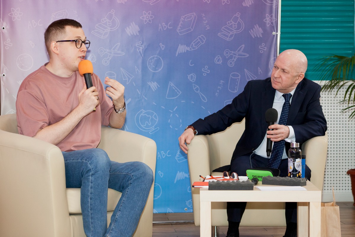 В ходе беседы Тимур Ринатович рассказал об особенностях обучения на механико-математическом факультете НГУ, о математике и её практических возможностях, а ребята смогли задать интересующие их вопросы из области математики и не только, участники встречи активно интересовались увлечениями и интересами гостя.