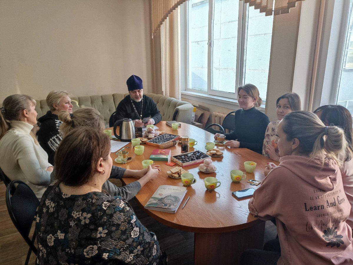 Во время беседы отец Виталий обсуждал с родителями вопросы воспитания и отношений в семье, в школе.