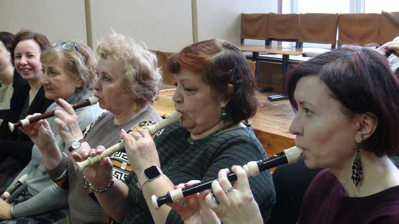Было очень весело и интересно! А если учесть, что некоторые из нас держали предложенные музыкальные инструменты первый раз в жизни, кабинет наполнился вовсе не какофонией, а приятными узнаваемыми мелодиями. Мы смеялись, ошибались, старались. «Ошибки – это тоже метод обучения!» – улыбаясь, говорила нам Екатерина Владимировна. Спасибо ей за мастер-класс, позитив и умение играть на всех инструментах! На этапе рефлексии многие отметили, что это был настоящий релакс, погружение в прекрасный мир музыки! Хочется продолжить занятия и разучить на домашней блок-флейте какую-нибудь мелодию – это полезно и для души, и для здоровья.