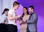 В завершение увлекательного и полезного разговора ребята приняли участие в розыгрыше специальных призов как от главного гостя встречи Михаила Алояна, таких и от Дворца творчества детей и учащейся молодёжи «Юниор».