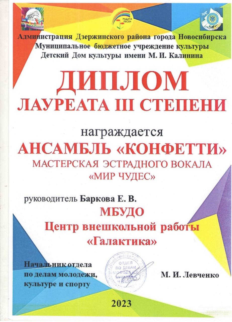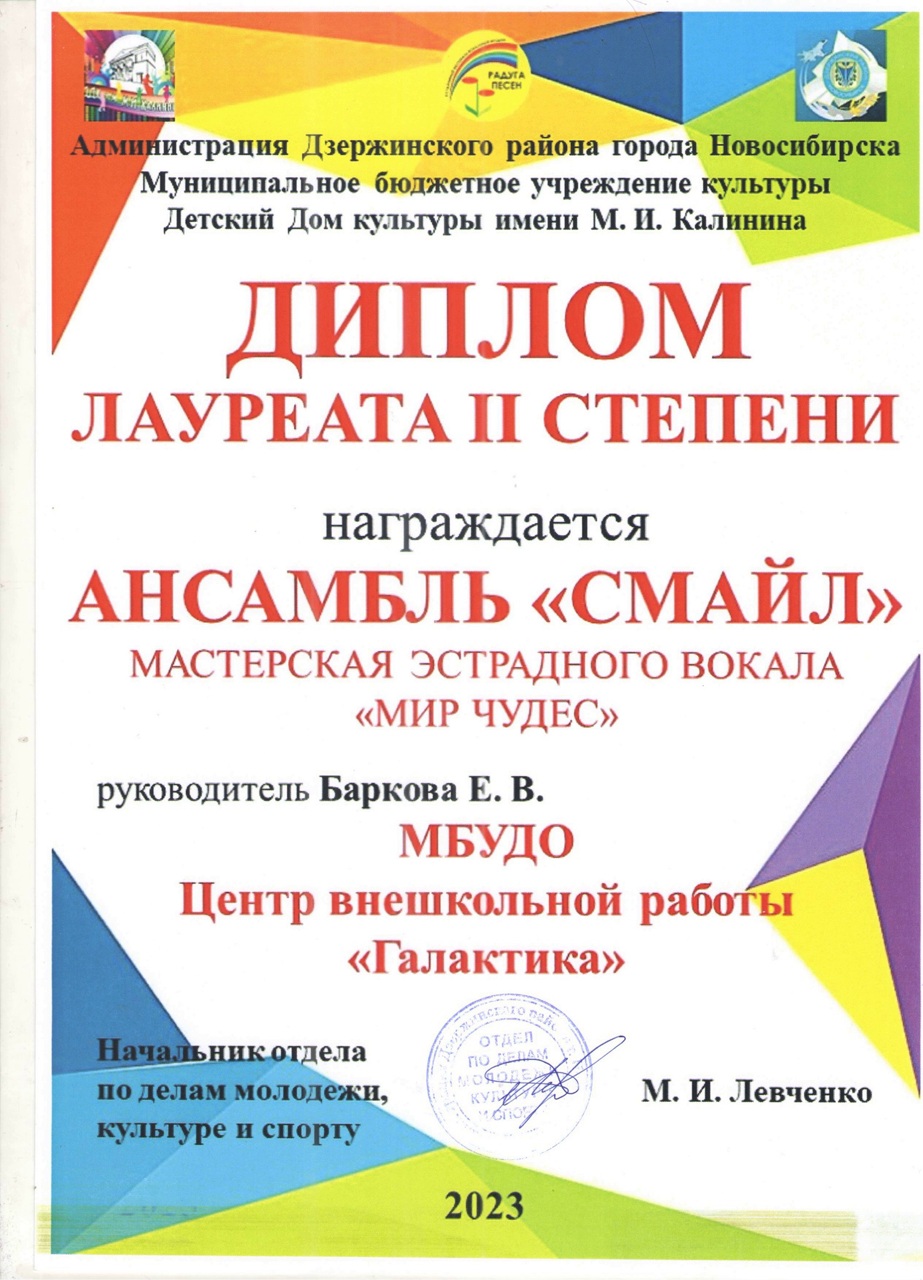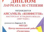 - Вокальные ансамбли «Смайл» и «Конфетти» – лауреаты II и III степени