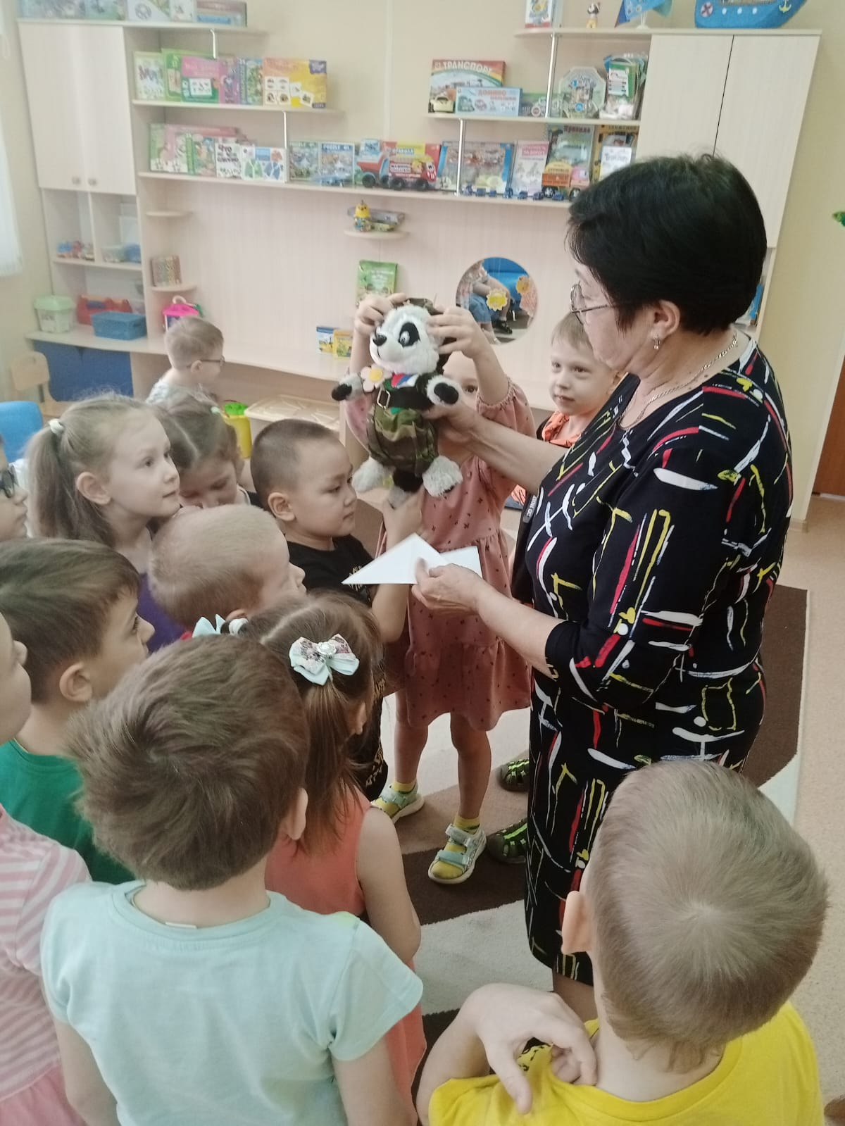 Весь детский сад № 105 «Улыбка» с нетерпением ждал возвращения нашего енотика по имени Цветочек, которому ребятишки поручили важное дело: он отправился в зону специальной военной операции, доставляя гуманитарную помощь нашим защитникам. Помимо медикаментов, термобелья, балаклав и многого другого, необходимого в тех неимоверно трудных условиях, Енотик передавал письма, рисунки, стихи, газету от детей и педагогов.