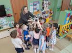 Мы собрали в зале старших деток, не предупредив их о возвращении Енота домой, но как только Юлия зашла с ним в зал, они кинулись к ней с криками: «Цветочек вернулся!» и стали его обнимать, вырывая друг у друга, затем нарядили его в военную форму, ведь он теперь – солдат. Юлия рассказала детям, как бойцы встречали Цветочка, как радовались и обнимали его, просили передать детям слова благодарности и письма в аккуратных треугольниках. А еще Юлия принесла малышам большой пакет конфет, сказав, что наши воины просили ее передать их в детский сад, что и сделали воспитатели. Надо было видеть, как детки второй младшей группы «Солнышко» пытались сначала накормить ими Енота, удивляясь, почему он все не съел, а потом сами включились в процесс, говоря, что это самые вкусные конфеты, потому что они «военные»! Ну, и, конечно, Цветочек прошел по всем группам, радуясь встрече с малышами. Сколько же счастья и восторга доставил он ребятишкам и нам!