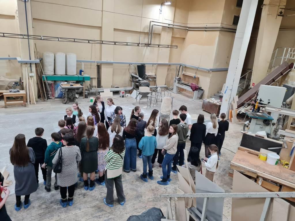 В подвале театра ребятам открылся целый отдельный мир! Им удалось побывать в бутафорском цехе. Здесь производят всю бутафорию для спектаклей, весь реквизит. Есть огромное цех, где рисуют декорации. Особый интерес вызвало помещение, где хранятся костюмы. Это кладезь для любой модницы – три этажа нарядов на огромной территории.